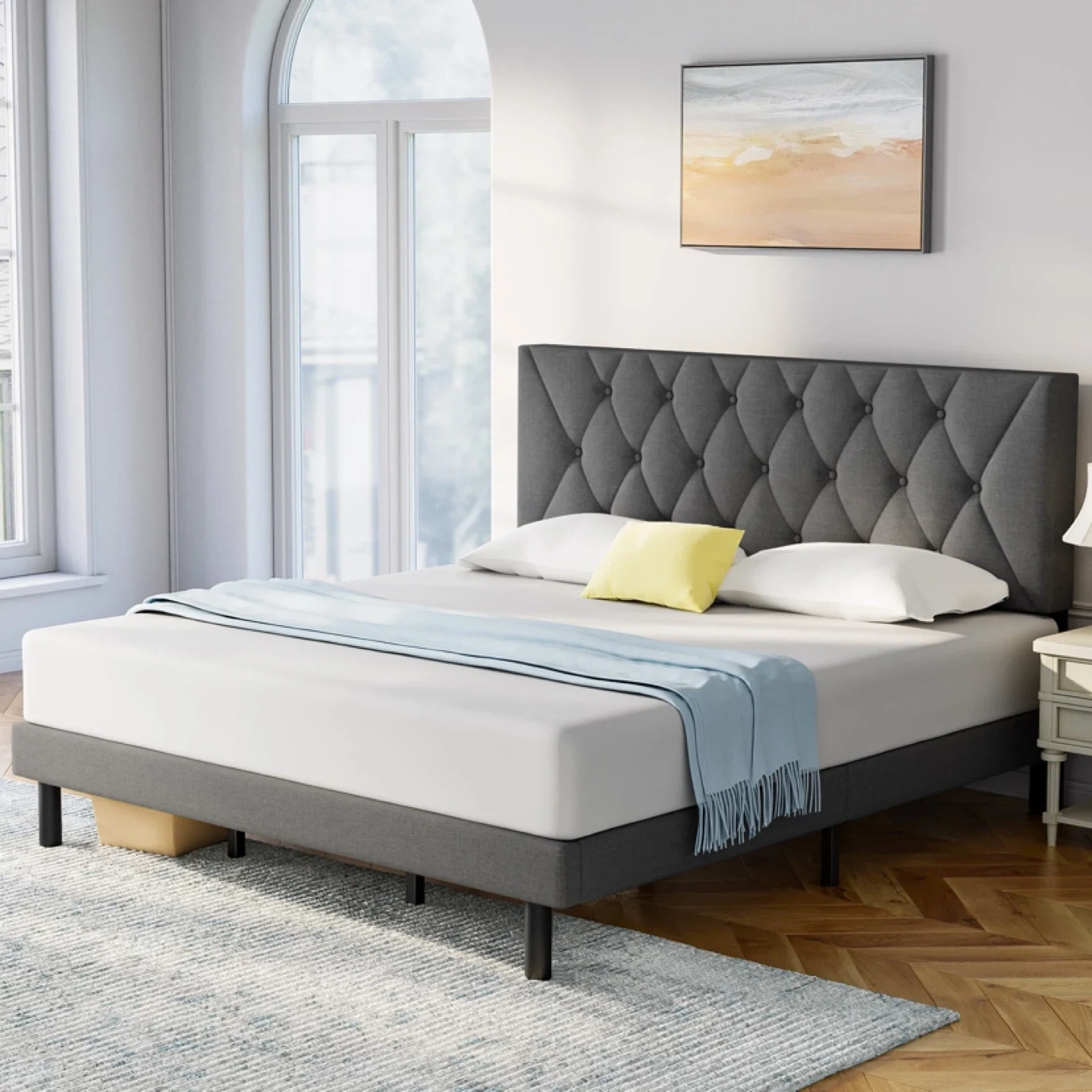 Full Bed Frame Platform Bed With Fabric