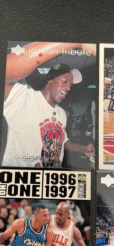 I have 14 various Michael Jordan basketball cards that I am looking to sell, they are all in good condition. Let me know if you want a specific picture of a specific one.
