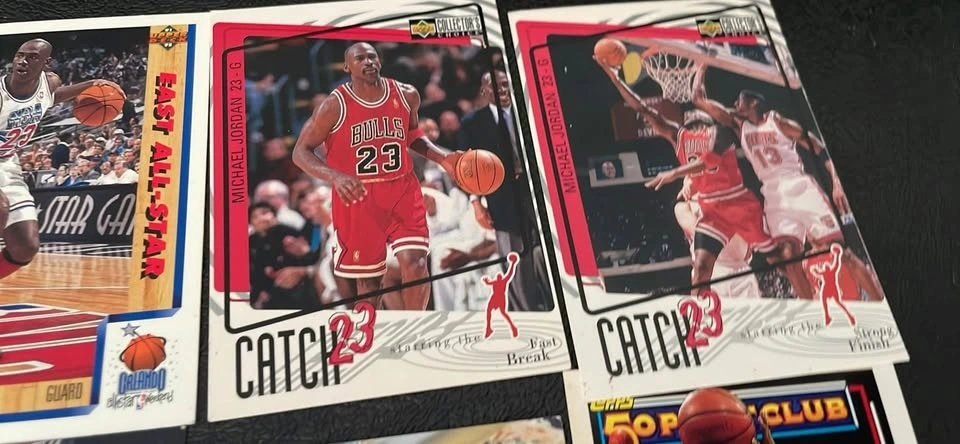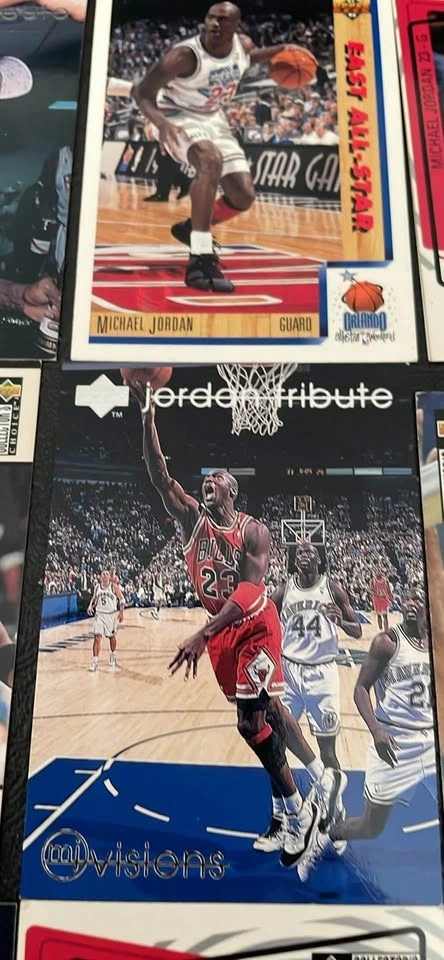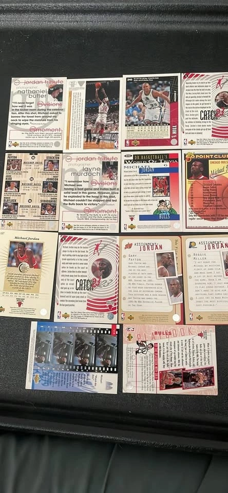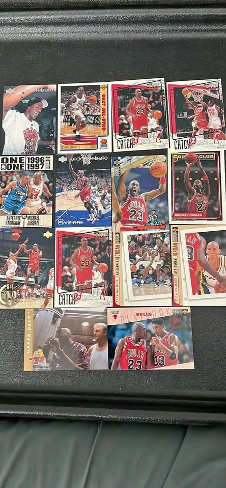 I have 14 various Michael Jordan basketball cards that I am looking to sell, they are all in good condition. Let me know if you want a specific picture of a specific one.