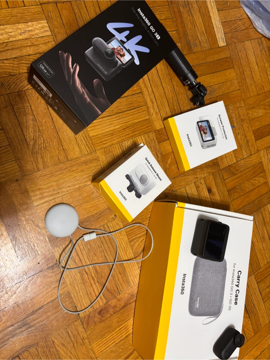Selling my Insta360 GO 3S action camera! It's in excellent condition and comes with all original accessories and the box. This tiny action camera is super versatile and perfect for capturing all your adventures. You can mount it anywhere and it shoots in 4K!