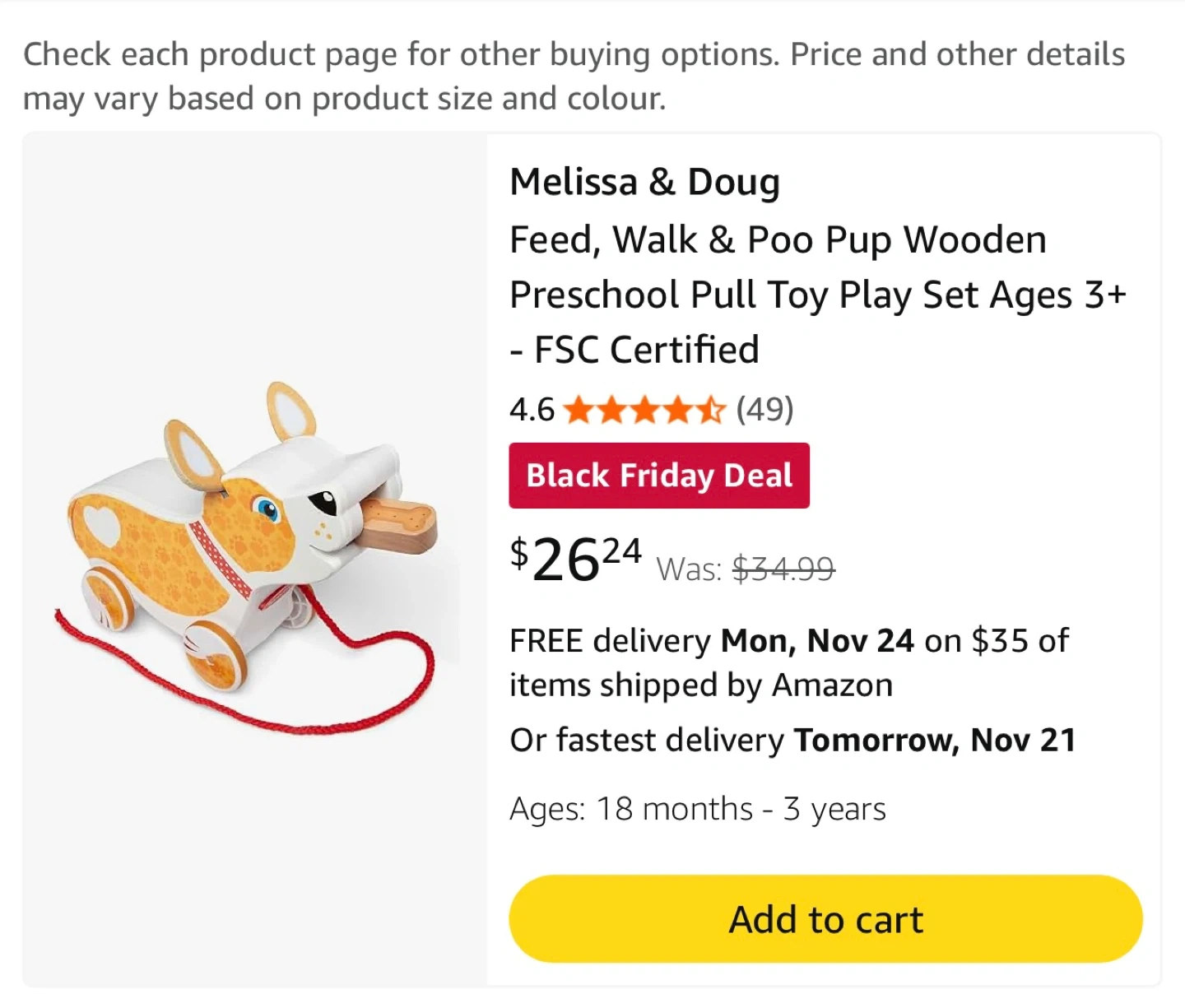 Selling a Melissa & Doug Feed, Walk & Poo Pup Wooden Preschool Pull Toy Play Set. Recommended for ages 18 months to 3 years.