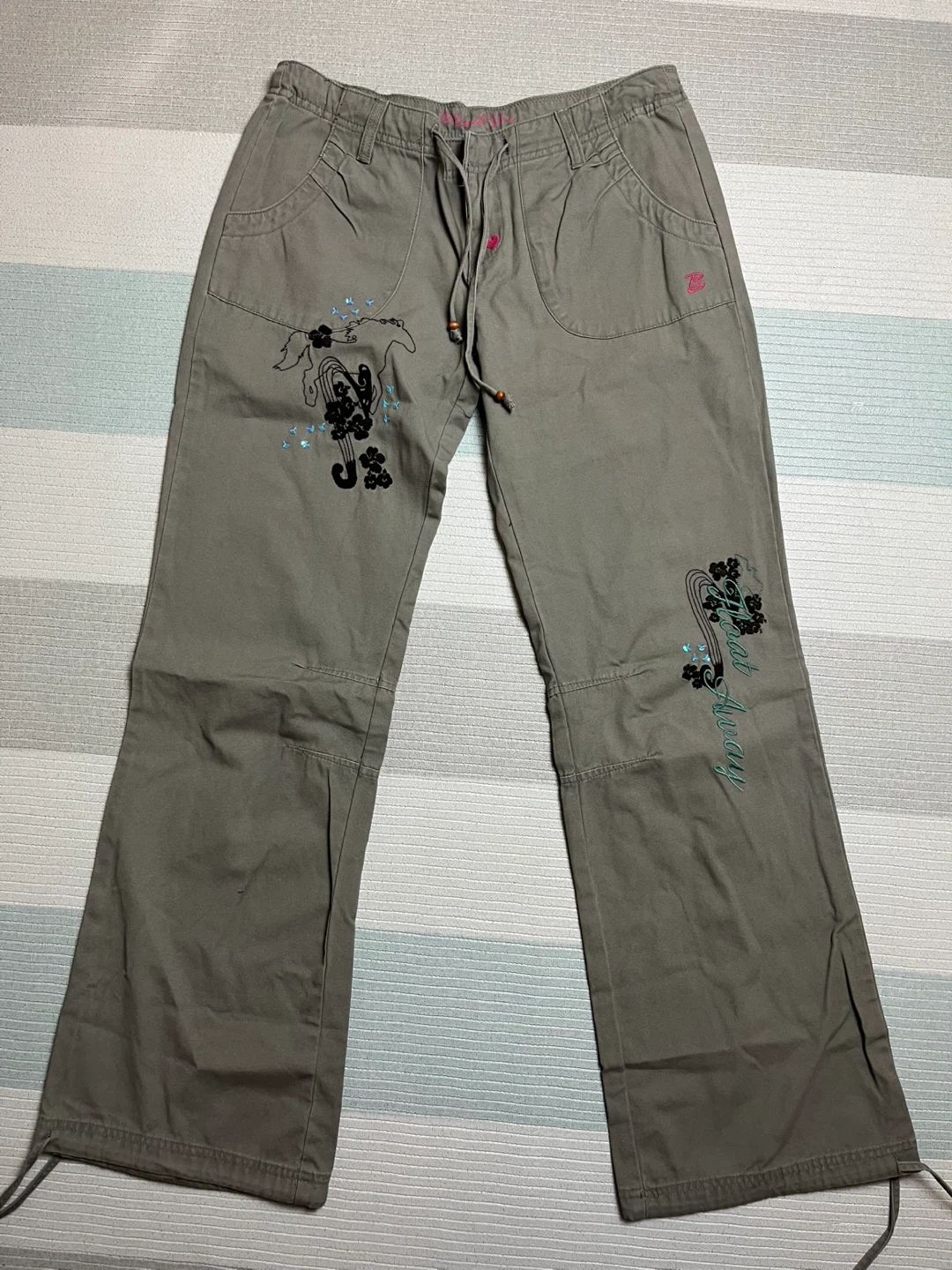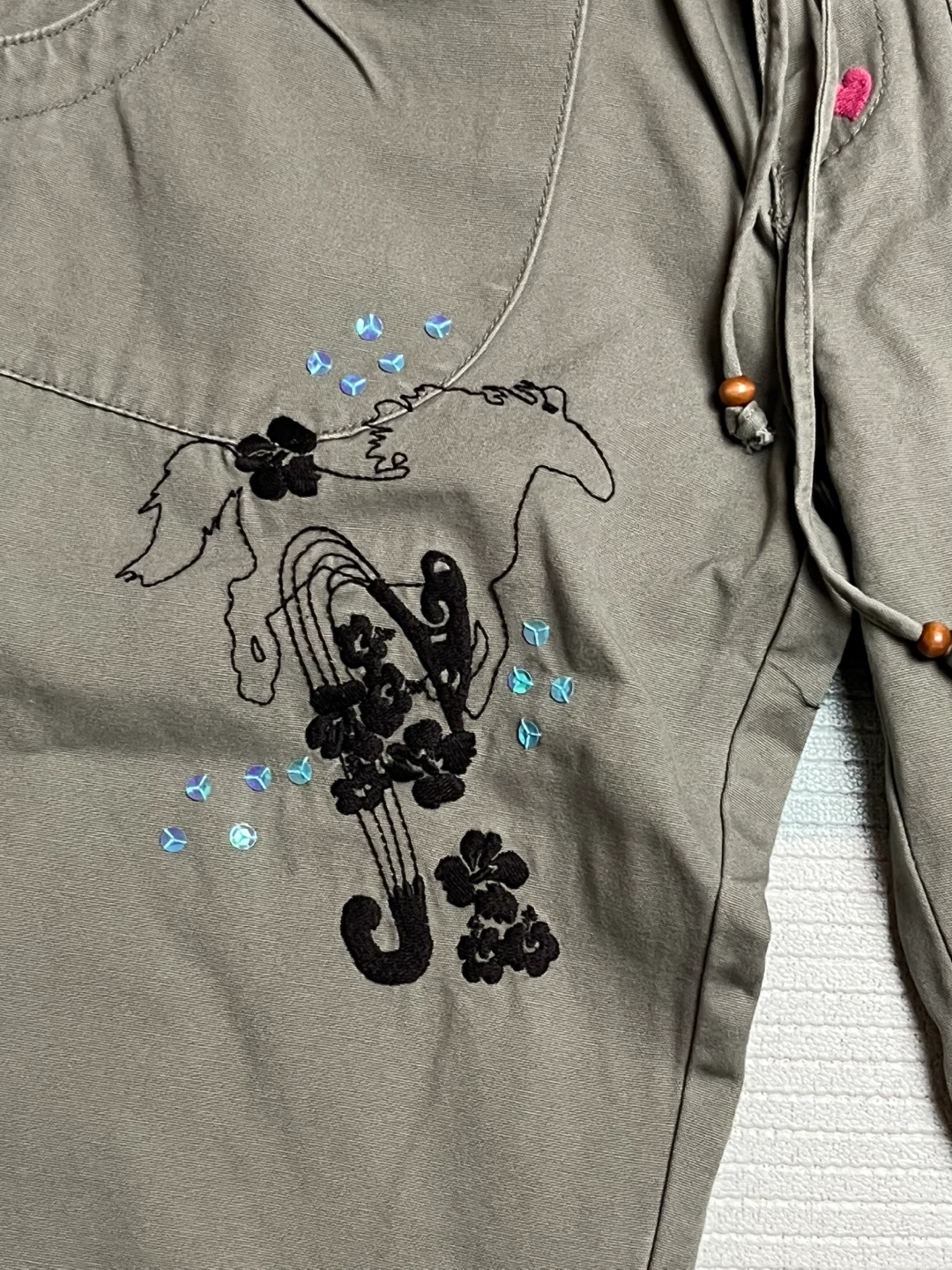 These olive green pants from BLENDShe are a unique addition to your wardrobe! They feature a fun, embroidered design and are made from 100% cotton. Size L.