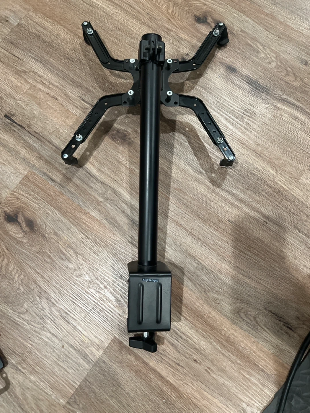 Selling a monitor arm desk mount in black. It's in good condition and ready to help you optimize your workspace! Perfect for creating a more ergonomic setup by raising your monitor to eye level