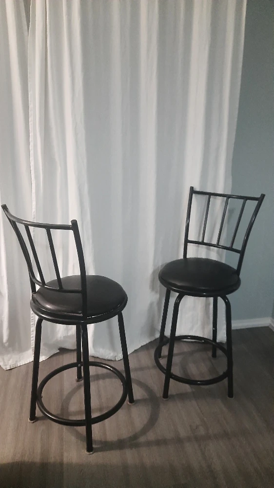 Selling a set of two black swivel bar stools. They're in great condition and would look great in any kitchen or bar area! The seat is padded for extra comfort