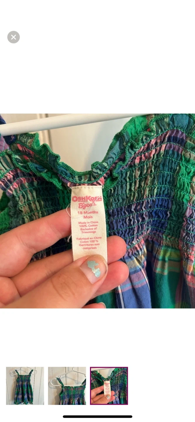 Oshkosh brand. Spaghetti strap dress. Pink, blue & green plaid. Size 18m. Brand new condition