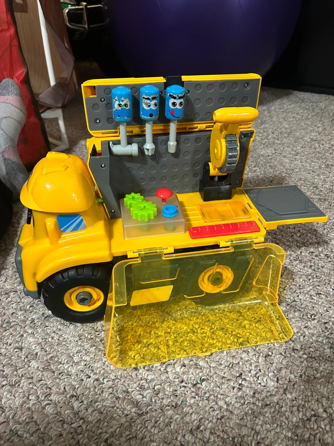 Selling a CAT dump truck that turns into a toolbox! It's a fun toy for kids who love construction vehicles and tools. Back wheels are removable for your child to play! It has a few signs of wear, but it's still in good working condition for lots of play