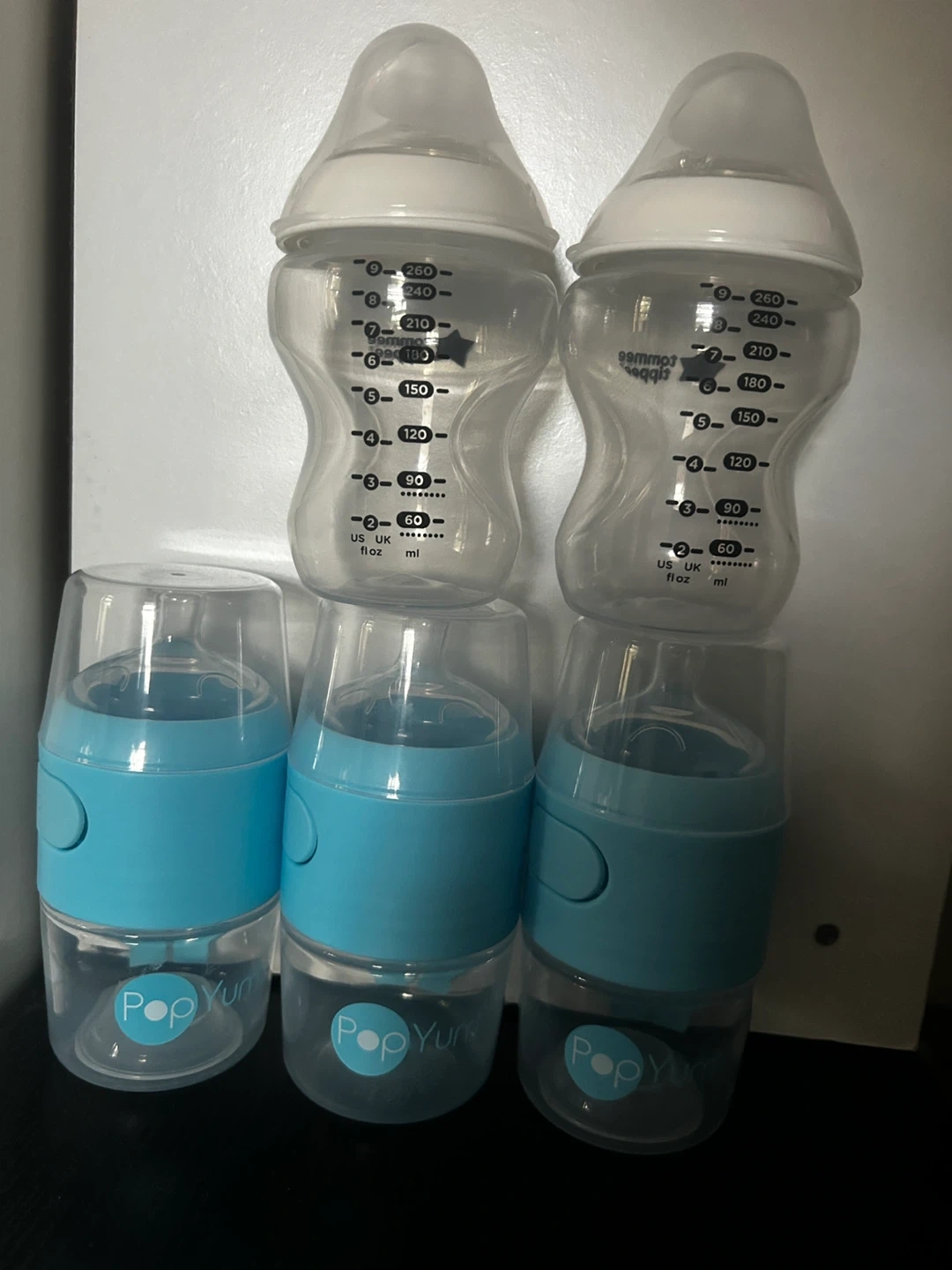 Selling a set of baby bottles including Tommee Tippee and PopYum bottles. Perfect for feeding your little one!