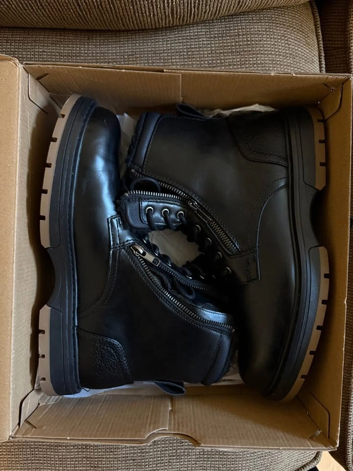 Never worn, new. Bought for $110. Leather high neck shoes, US size 10.