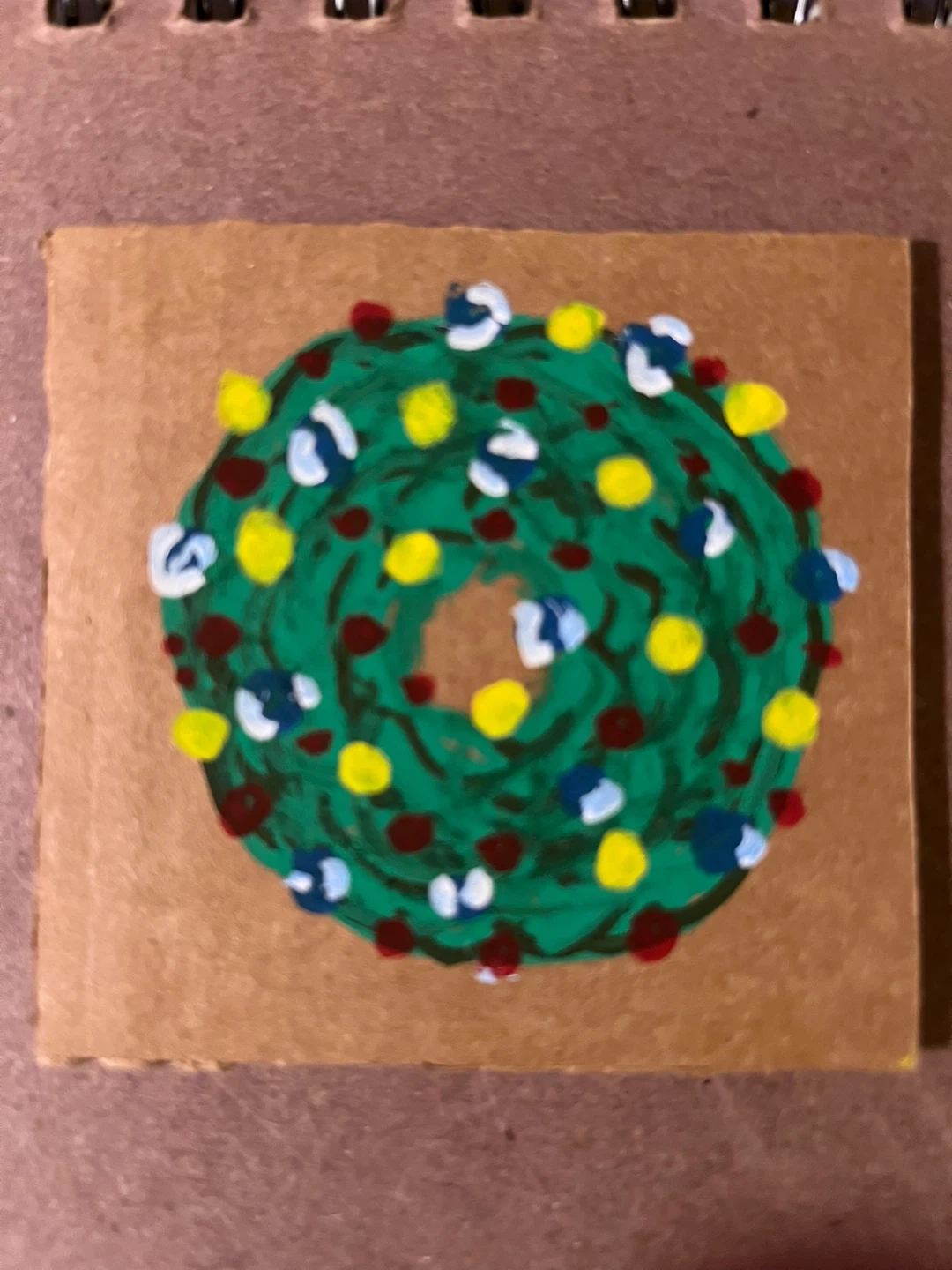 This is a cute little handmade painting of a Christmas wreath! Perfect for adding a touch of holiday cheer to any space