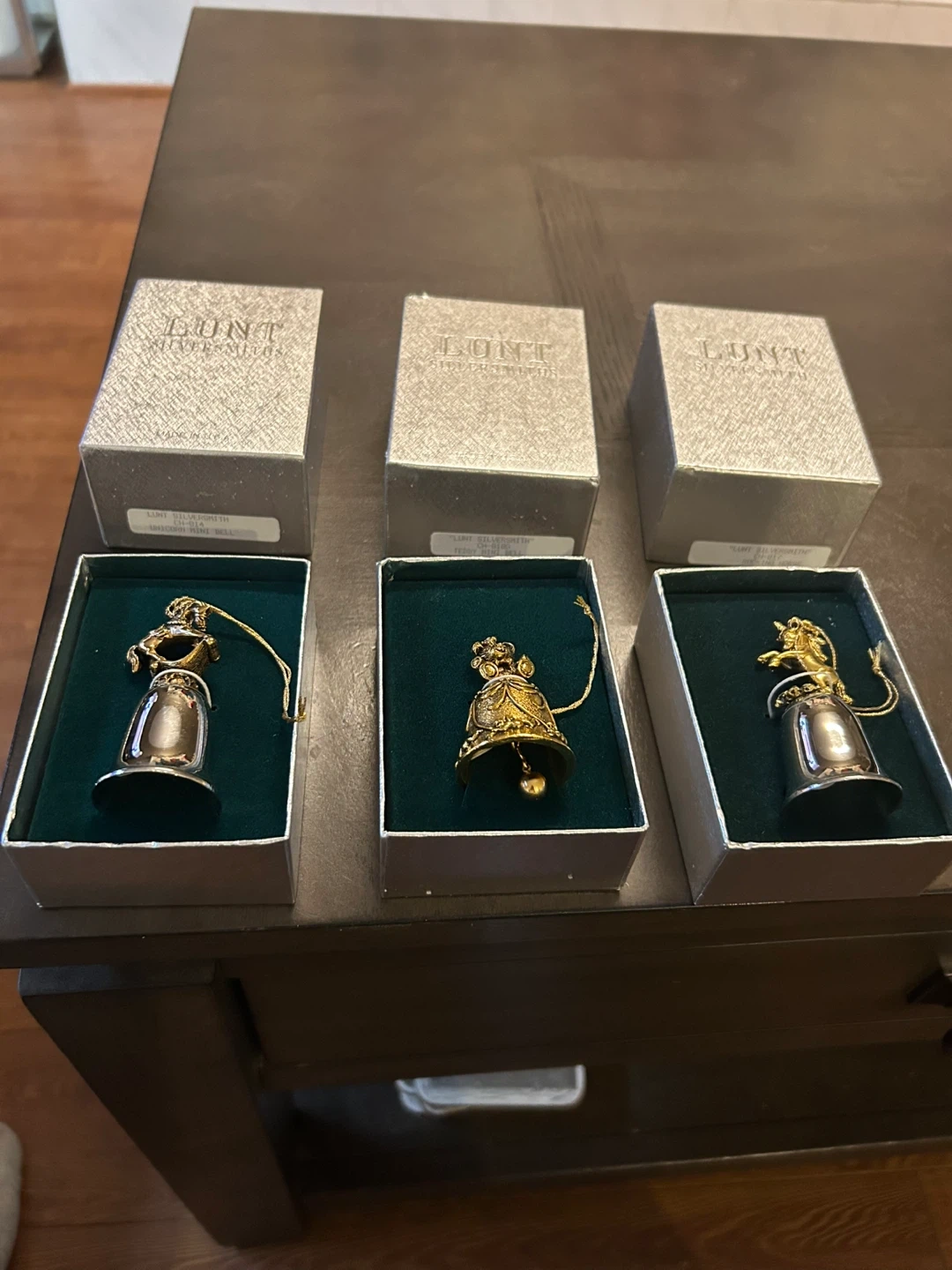 Buy & Sell3 Lunt Silversmiths Christmas Ornaments3 Lunt Silversmiths Christmas Ornaments$40Rocking Horse Teddy Mini Bell Unicorn Mini Bell antique LUNT Christmas ornaments. Can hang on a tree or sit on a shelf. In perfect condition0 chats·1 favorites·6 viewsSELLERConnieWestwood Plateau736 reviewsWHERE TO MEETWestwood Plateau