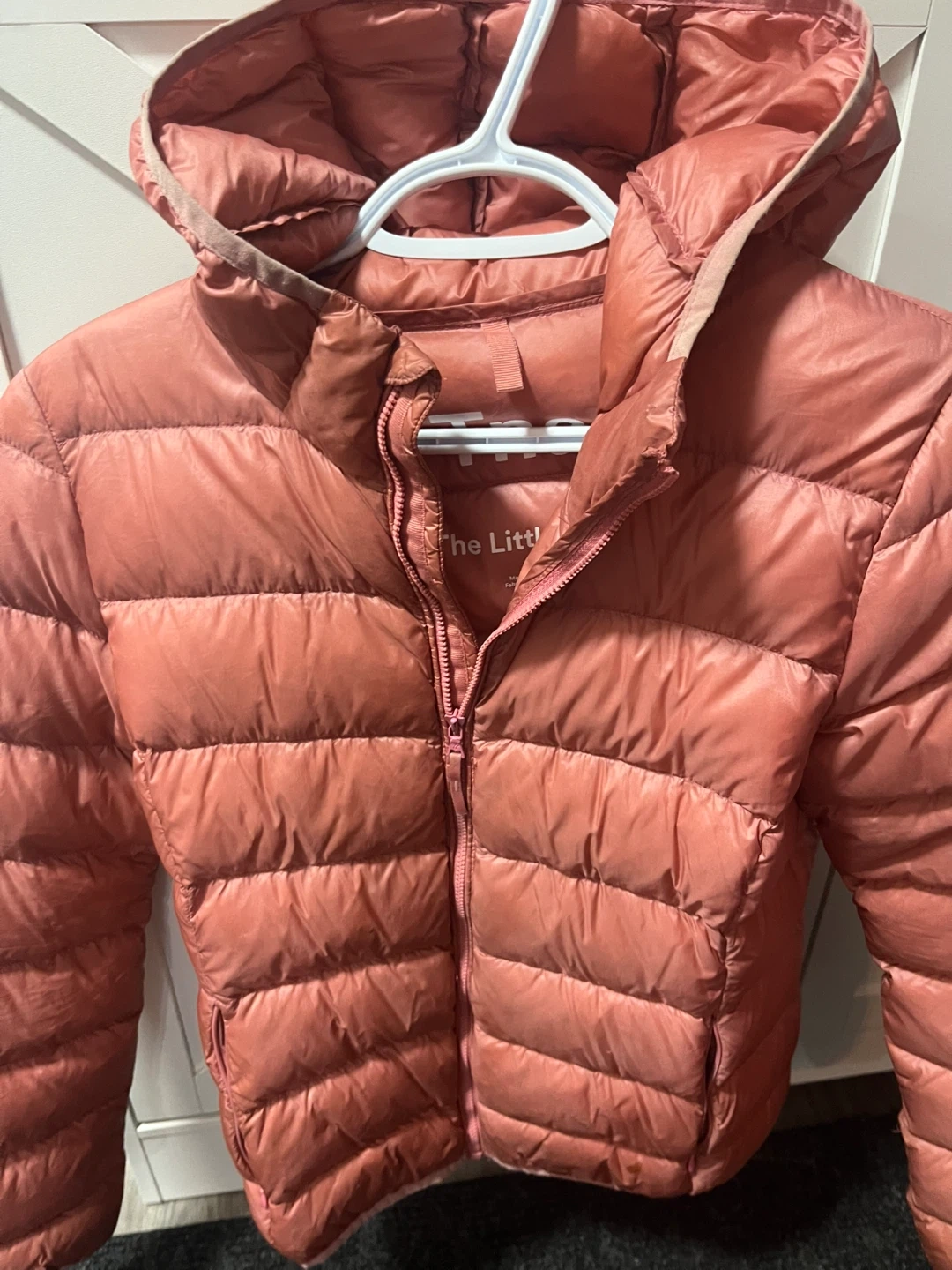 The Little Puff from TNA is a lightweight and portable jacket that's perfect for layering! It's in great condition but needs to be washed and ready for a new home. The salmon pink colour is super cute and will go with anything
