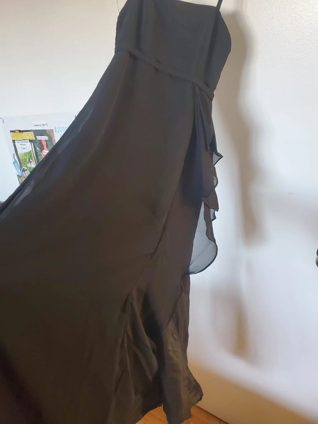 Black Azazie dress in size J12. This is a special occasion dress for a petite woman or a young girl. Was used for a graduation.