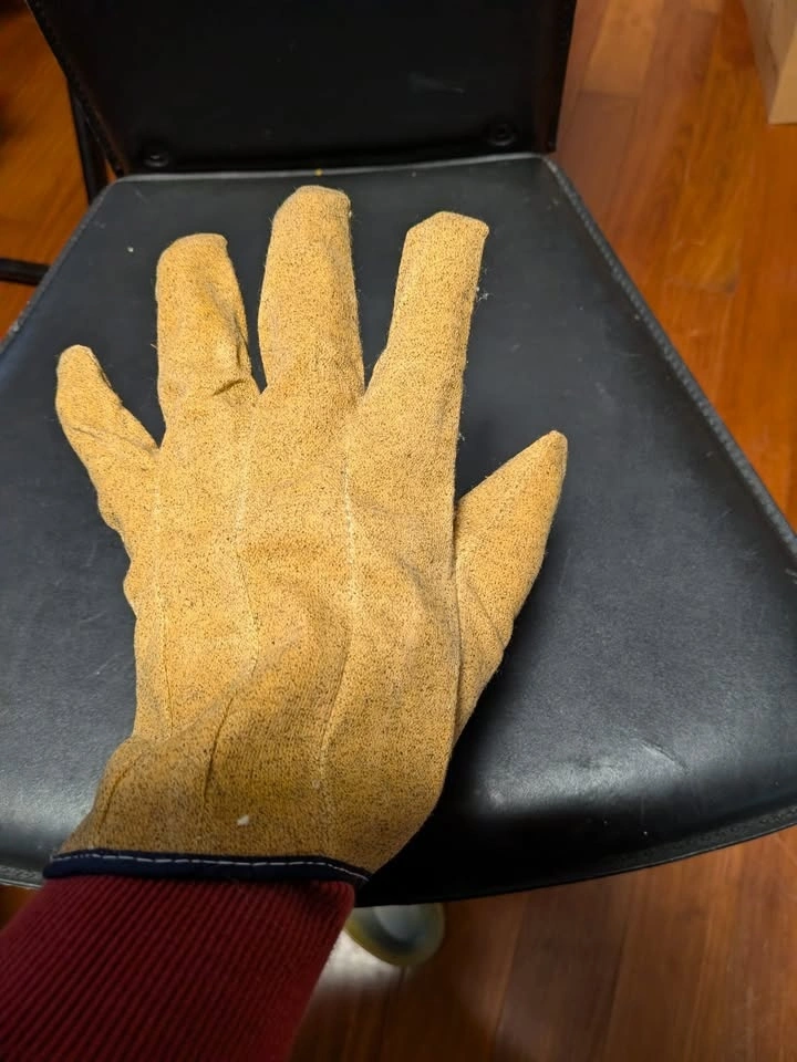 Welding gloves-- a pair of practical mitts for protecting your hands while heavy work or doing some physical activity.