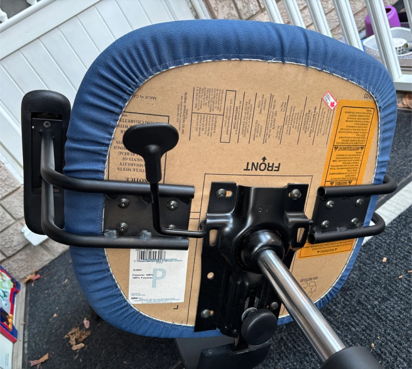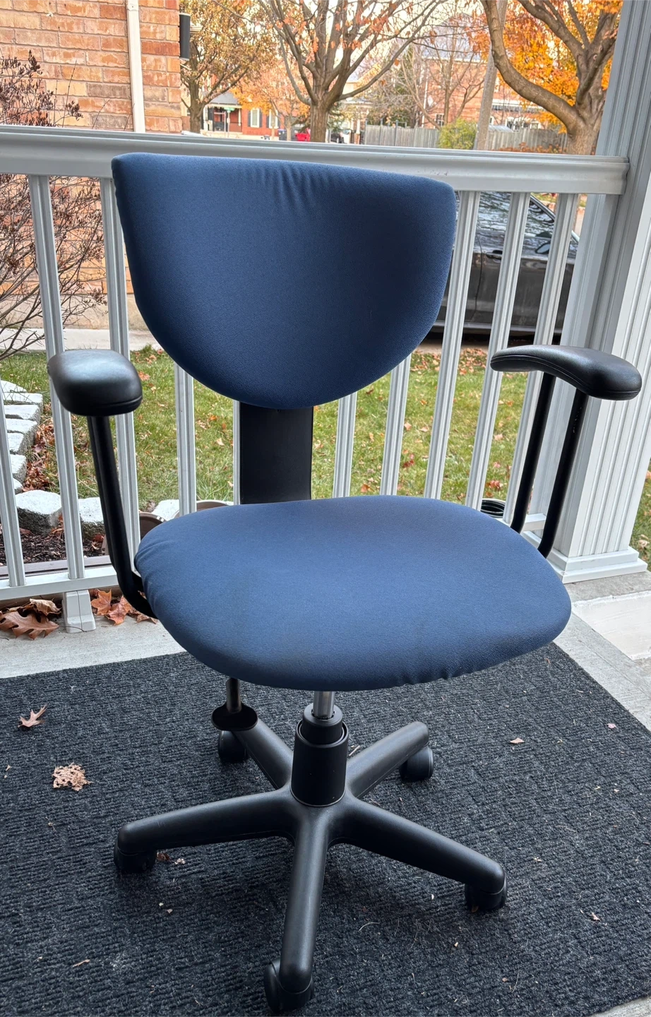 Selling a Global Furniture Jenny task chair in blue. It's in good condition and ready for a new home office! The chair cover is made of 100% polyester.