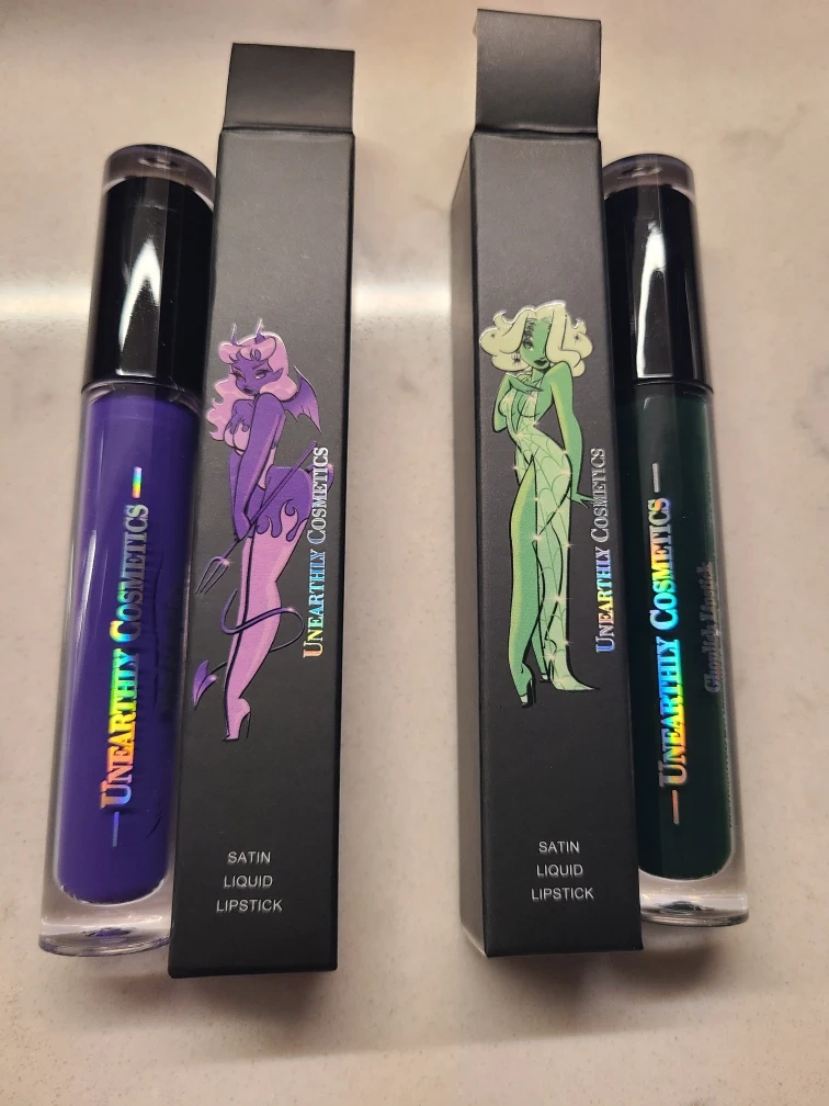 Brand new Unearthly Cosmetics Devour Satin Liquid Lipsticks/gloss. It comes in its original box, so it's perfect as a gift or for yourself! The lipsticks/glosses are a beautiful satin liquid formula.