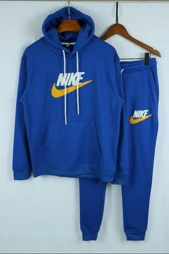 Elevate your activewear collection with this sleek two-piece track suit from Nike, tailored for men who value both comfort and style. The ensemble, available in a striking blue hue, is crafted from a soft polyester blend with cotton touches, ensuring durability and a cozy feel. Designed in a regular fit, it's versatile for a range of body types, with a size 2XL offering ample room for movement. The tracksuit features a modern fleece fabric that provides extra warmth during cooler weather workouts or casual outings. Measurements : 2XL : chest 25”, length 29” , Arms 26”Bottom : length 41” , Thai 23”, waist 38” to 42”