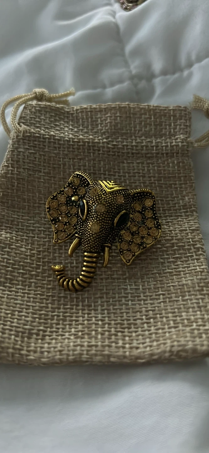 Selling a lovely elephant brooch pin! It has a nice gold tone and intricate detailing. Comes with a small bag for storage.