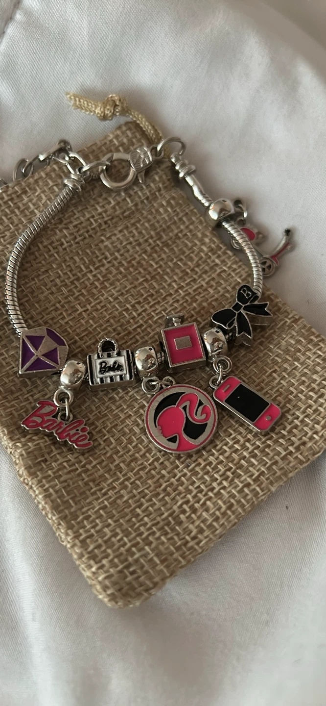 Cute charm bracelet with Barbie themed charms. Perfect for any Barbie fan!