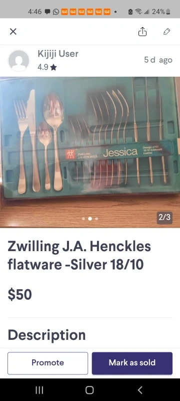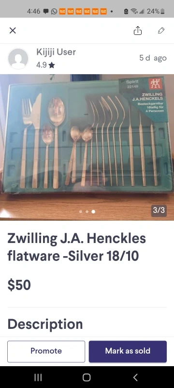 Selling a Zwilling J.A. Henckels flatware set in silver 18/10. The set appears to be in good condition and comes in its original case.