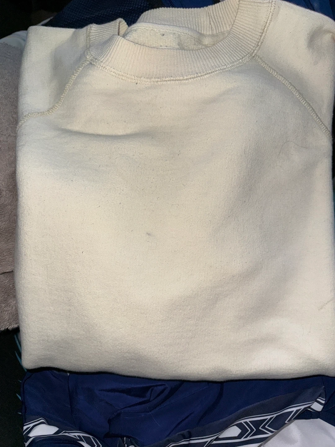 Selling a cream-coloured sweatshirt. Super comfy and fits nicely on the body. It's name brand so it's not a cheap material or anything. It's in good condition and ready for a new home! It's a cozy and versatile piece that would be great for layering or just lounging around