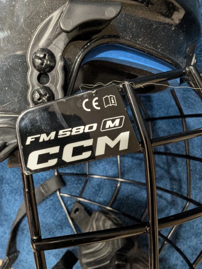 Selling a CCM hockey helmet, size medium, complete with the FM580 M facemask. It's in great shape this helmet was only tried on for purchase never been worn for games