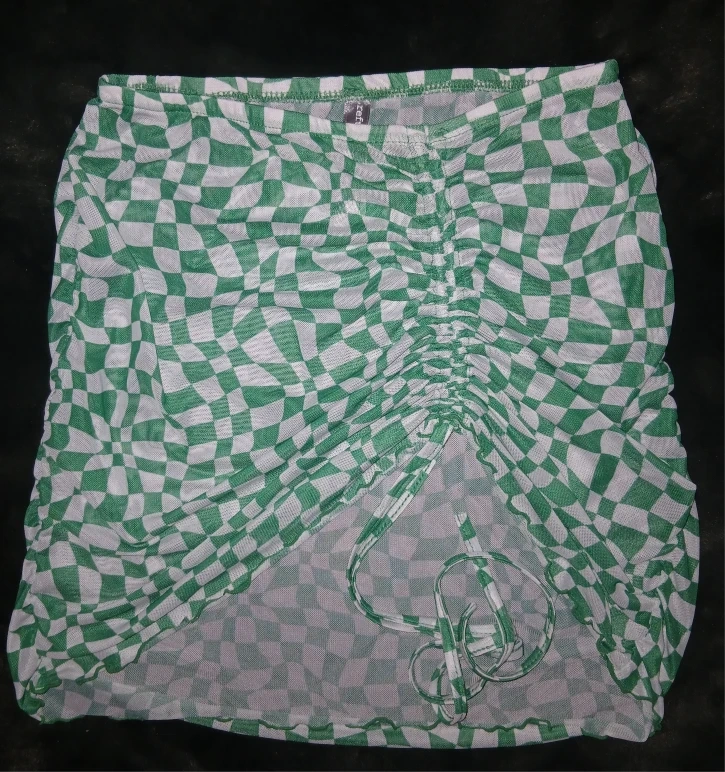 Green & White Checkerboard Swimsuit Cover Up Skirt - XS
