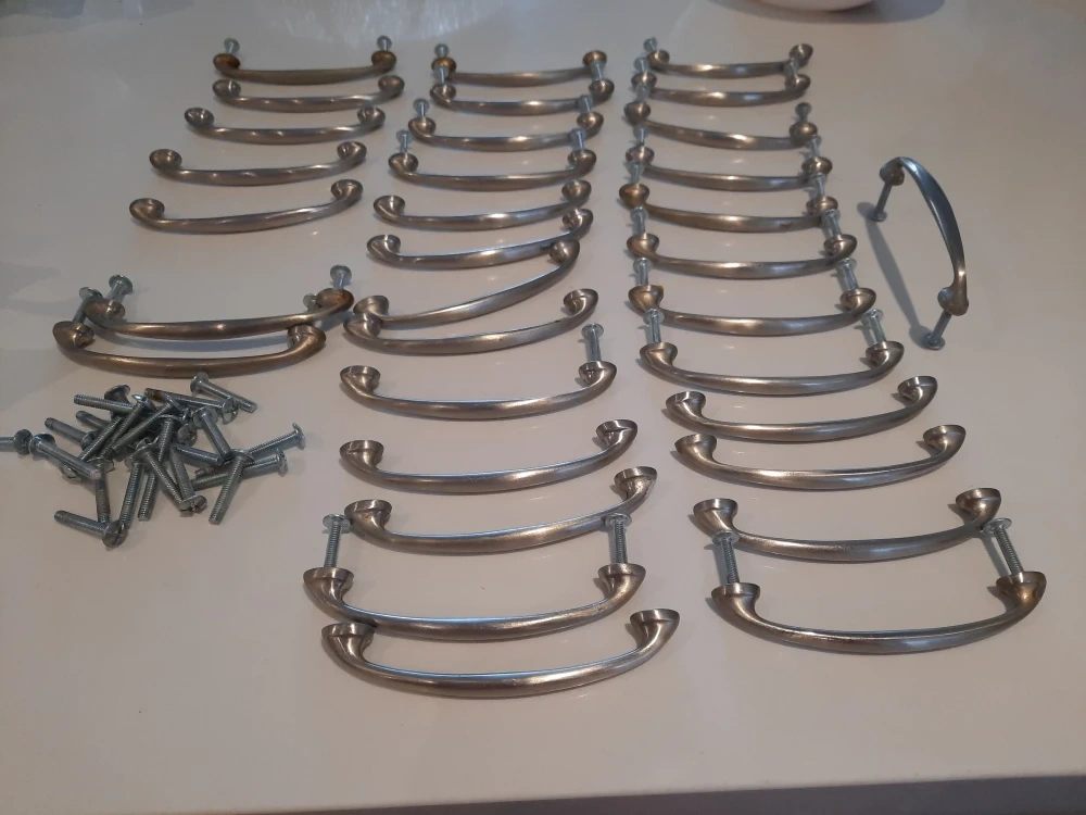 Selling a lot of 30 drawer pulls or handles. They are in good condition and come with the screws. Pickup from Markham serious buyers only