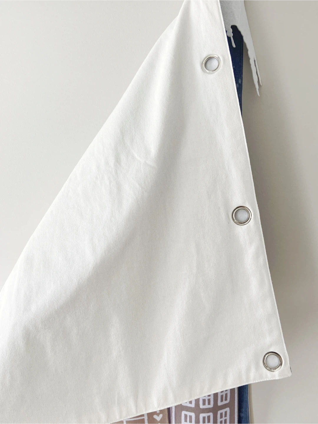 Here's a cute advent calendar wall hanging, ready to be filled with treats and surprises! It features a winter gingerbread village design with little pockets shaped like houses, perfect for adding a festive touch to your home during the holidays. Hidden grommets under icicles.