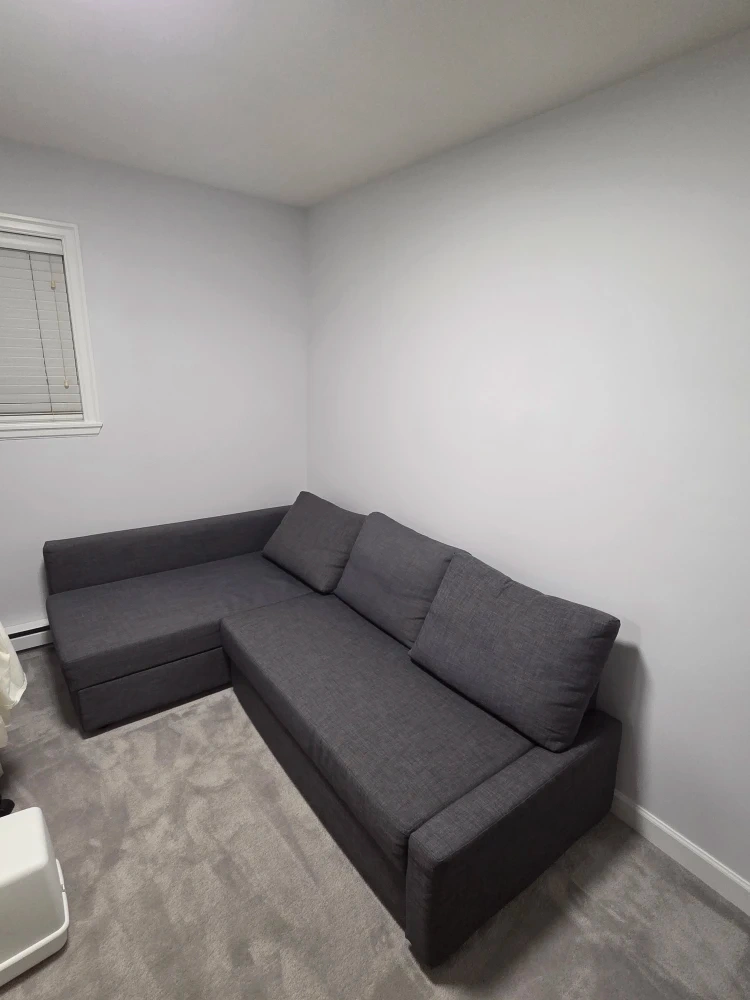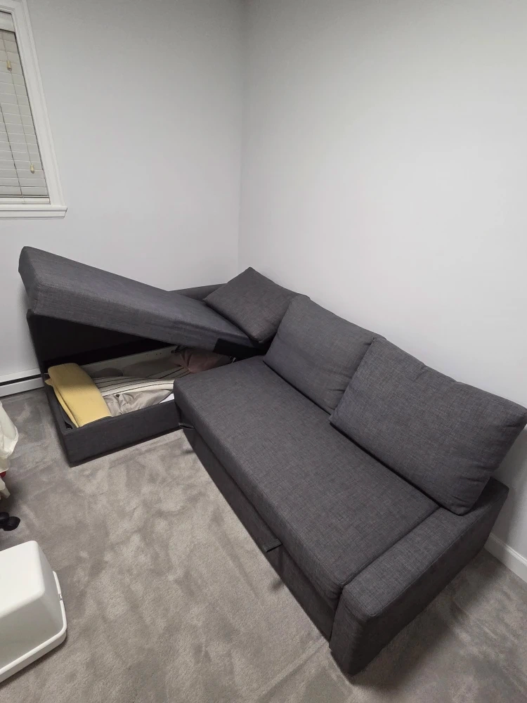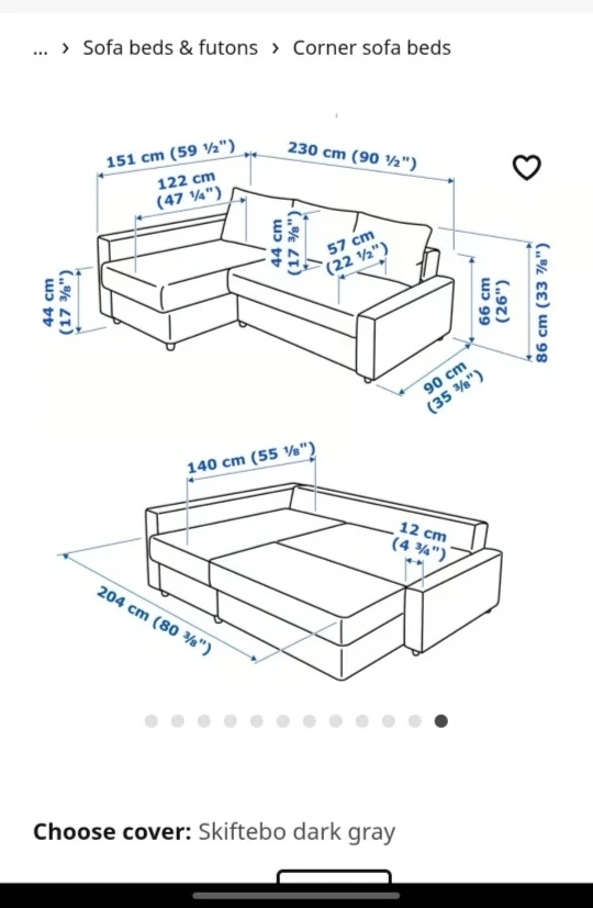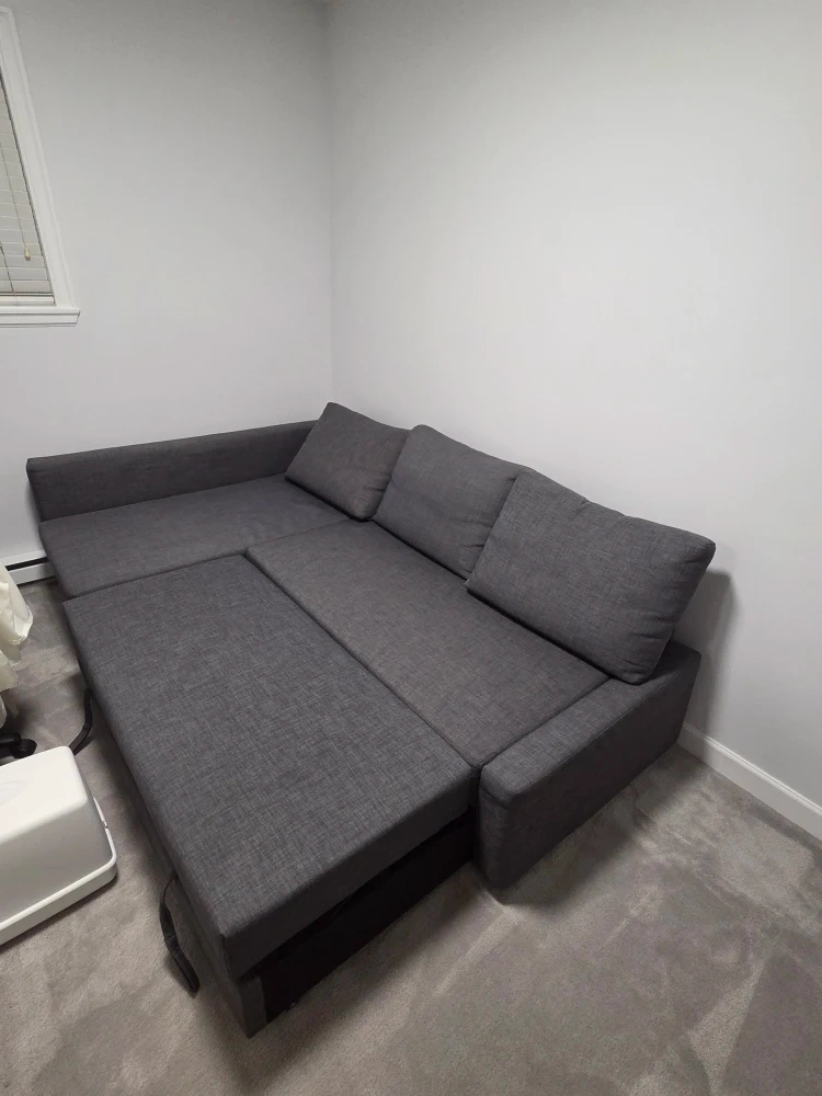 Looking to sell my IKEA corner sofa bed in Skiftebo dark gray. It's in great shape and super functional! The dimensions are approximately 151 cm x 230 cm, with a height of 66 cm. The sofa also has a convenient storage compartment underneath. Perfect for small spaces or anyone needing an extra bed for guests.