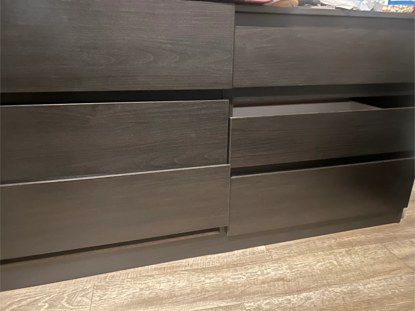 Selling 2 dresser with six drawers! It's in good condition and has lots of space for storage. The dresser is black.