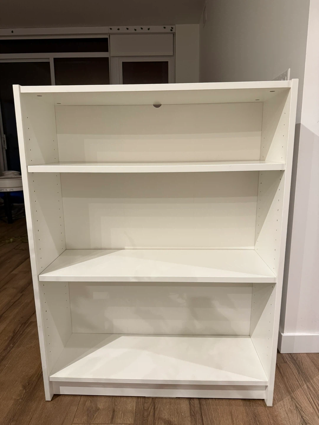 Selling a white IKEA Billy bookcase! It's in great shape and ready for a new home. This bookcase measures 80x28x106 cm (31 1/2x11x41 3/4 ").