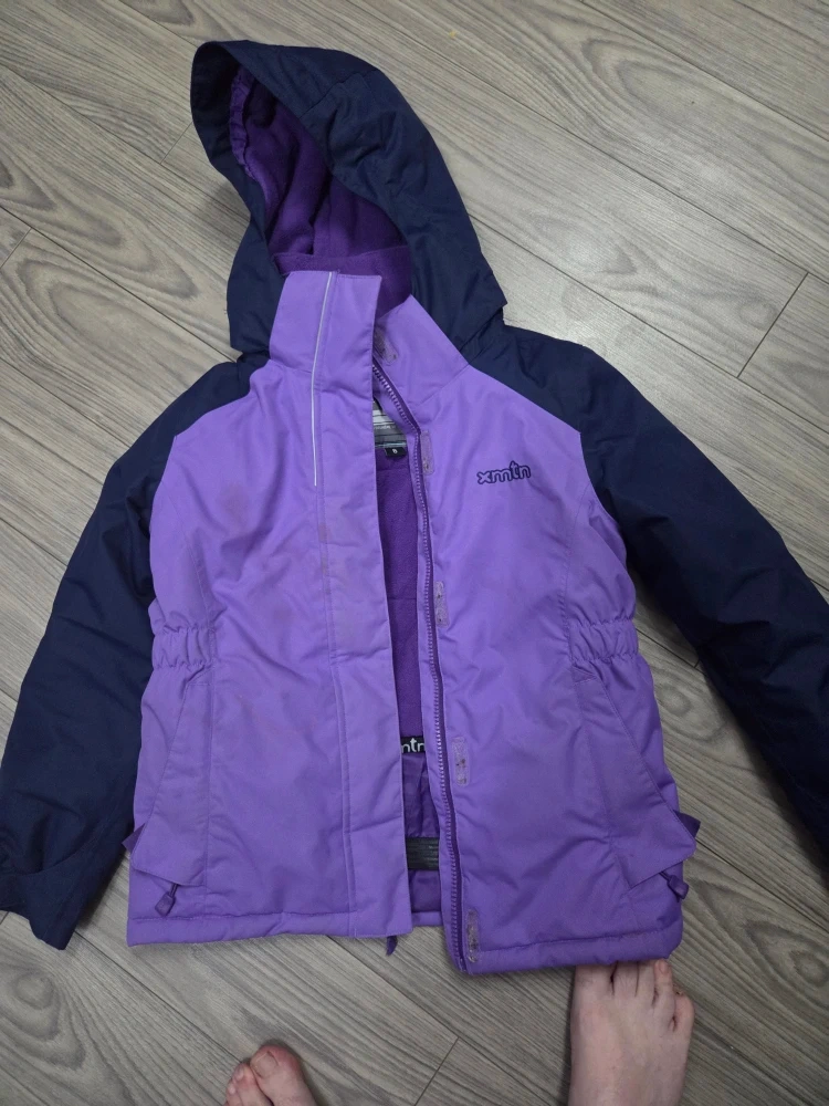 I'm selling a gently used XMTN winter jacket in purple and navy blue. It's a size 6 and perfect for keeping your little one warm this winter season! The jacket features a hood and a comfortable fit.