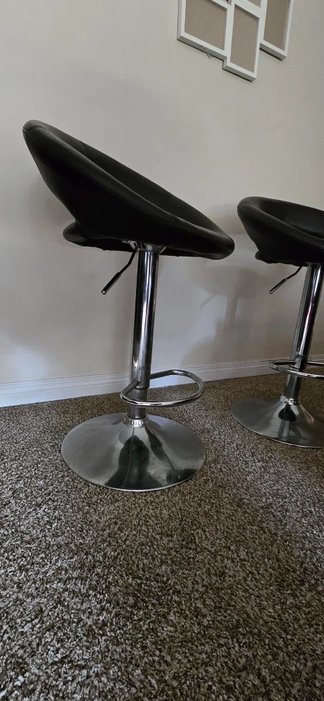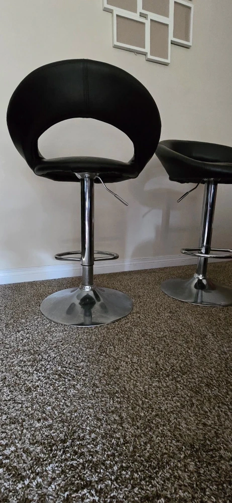 Selling a pair of swivel bar stools. They are black and have a chrome base. They would be great for a kitchen island or bar area
