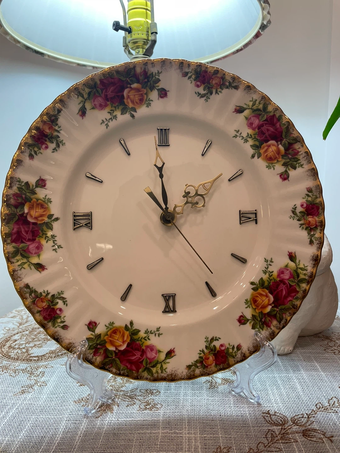 This is an original factory-made Royal Albert clock, not a converted plate.