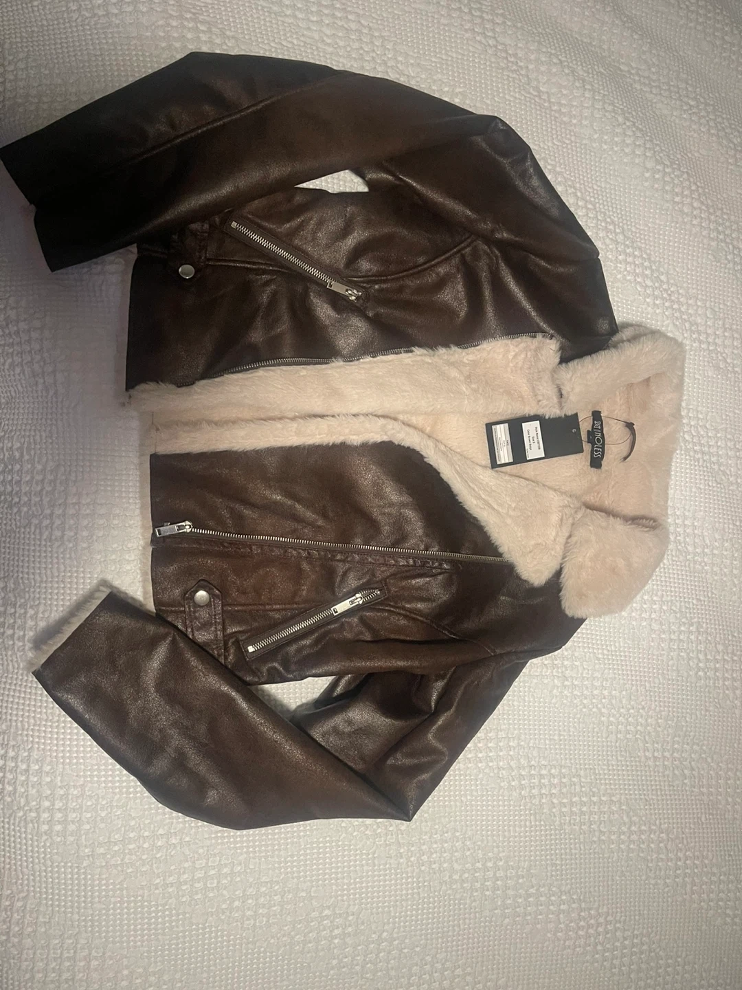 Selling a brand new NoLess jacket! It's a stylish faux leather jacket in a beautiful brown and beige colour combination. The jacket is a size small and has a cozy faux fur lining. Perfect for adding a touch of edge to your wardrobe!