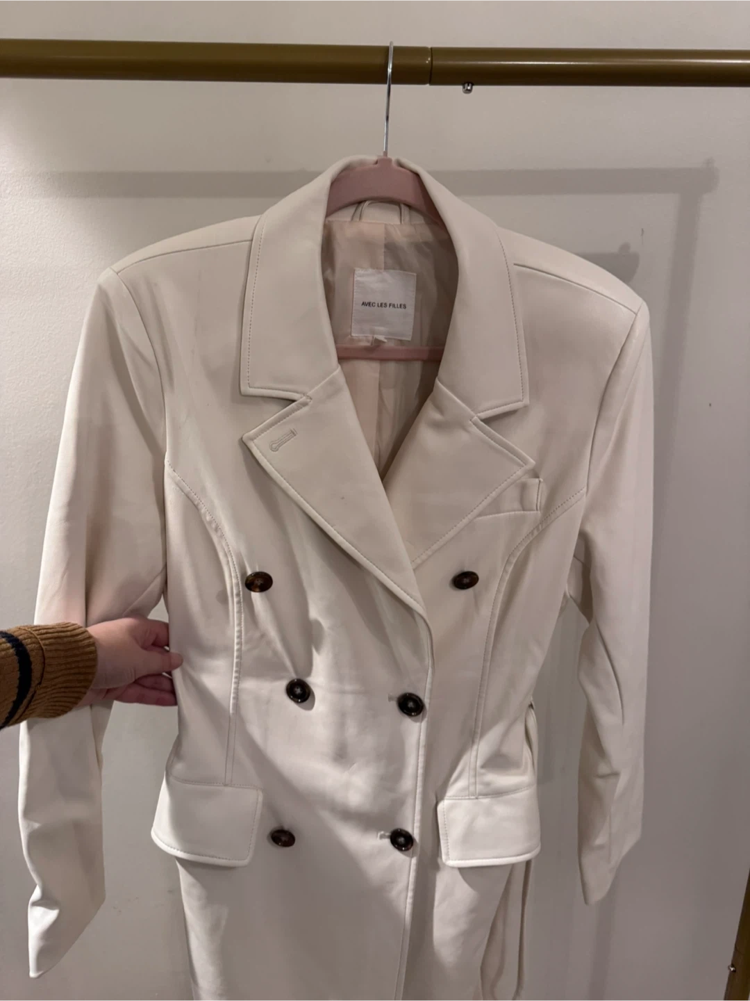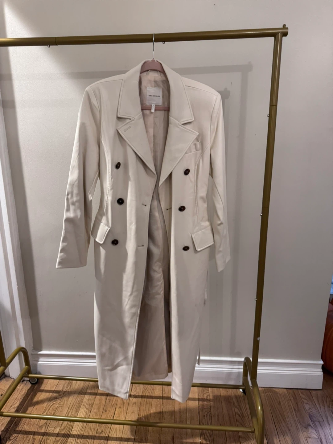 Selling a stylish cream-colored trench coat from Avec Les Filles! It's a size L and in great condition. Perfect for adding a touch of elegance to any outfit!