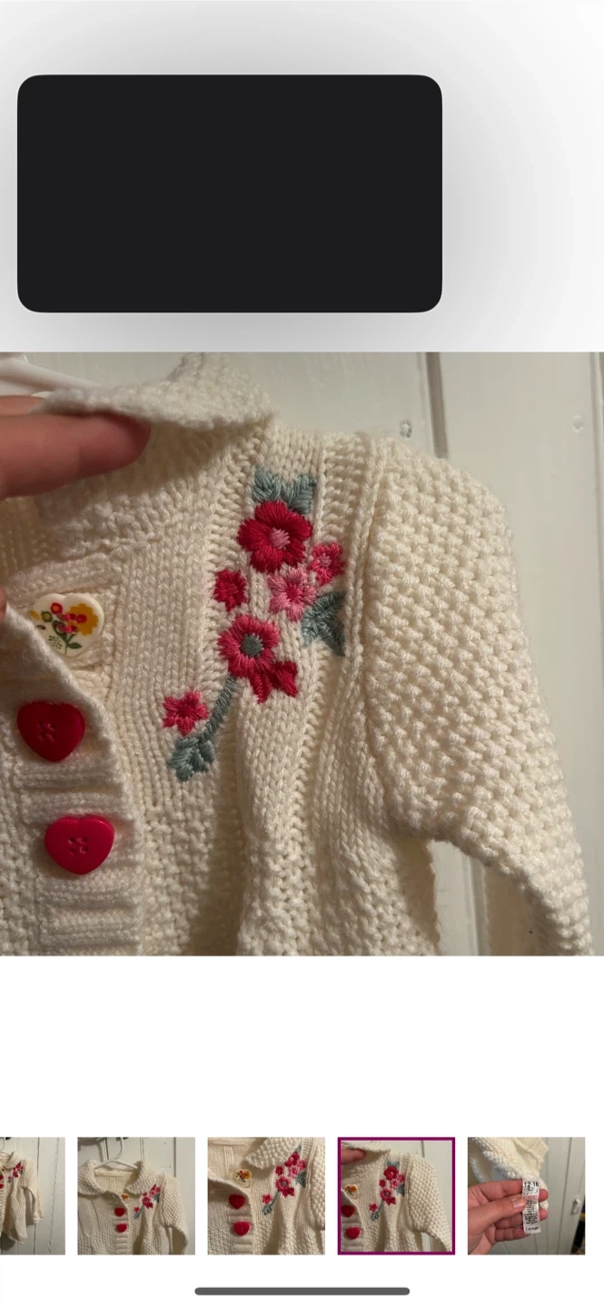 George brand. Three button down knit cardigan. White with pink embroidered floral accent. Size 12/18m. Brand new condition