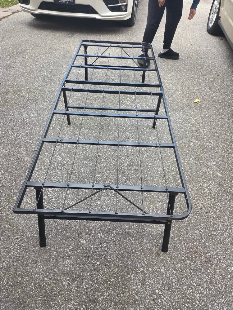 Selling a twin size folding bed frame in black! It's super convenient for saving space, especially if you need an extra bed for guests. Easy to fold up and store away when not in use. The frame is in great condition and ready for a new home!