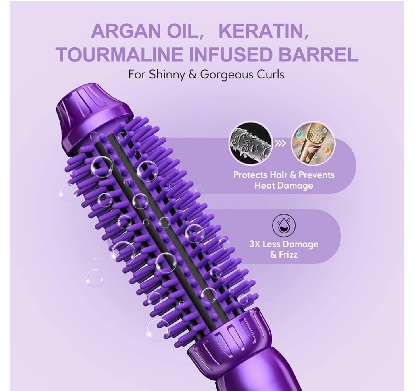 This Farery curling iron brush is in great condition and ready to give you shiny, gorgeous curls! The barrel is infused with argan oil, keratin, and tourmaline to protect your hair and prevent heat damage.