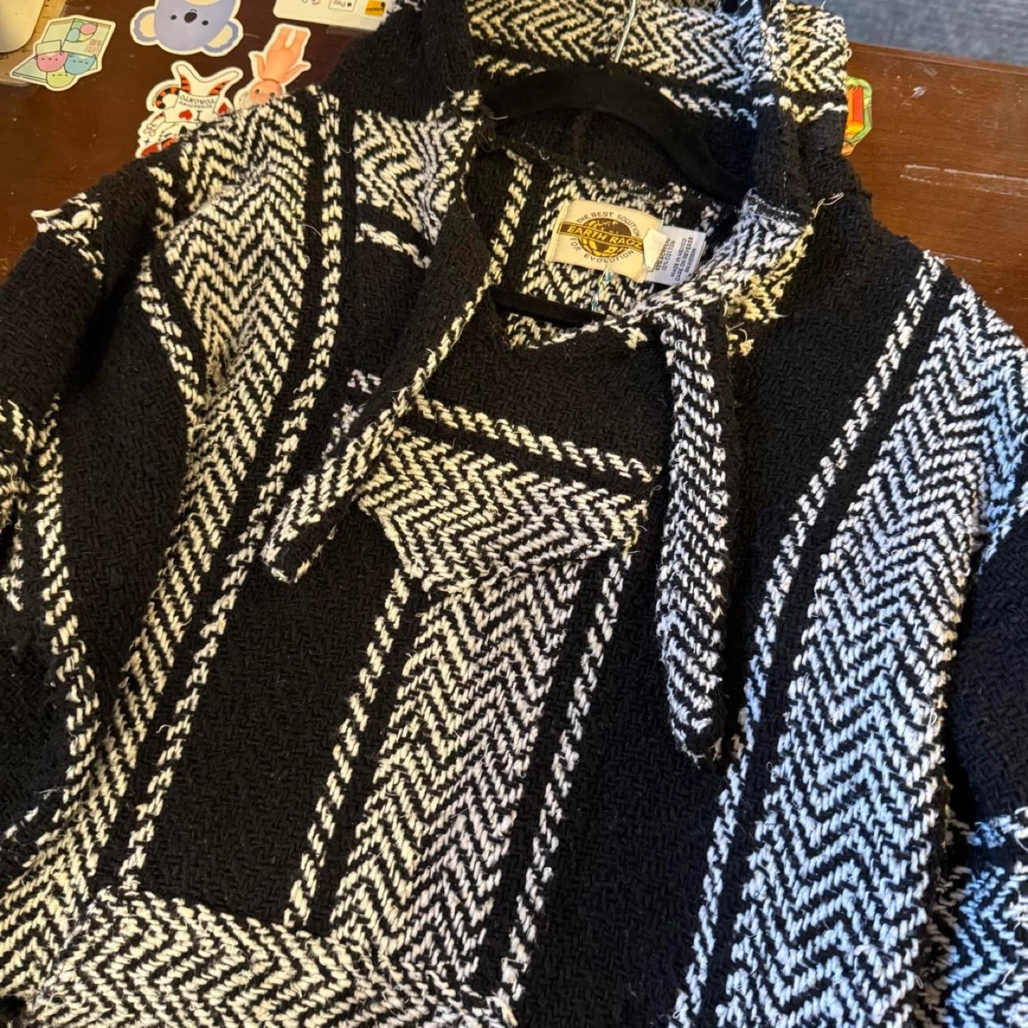 Buy & SellEarth Ragz Baja Hoodie - Black & WhiteEarth Ragz Baja Hoodie - Black & White$19Cozy black and white grunge hoodie/poncho/‘dr00g rug’ (Measured laying flat) Length: 27.5” Waist: 23” Bust: 25” Arm Length: 24”ConditionGoodSizeExtra LargeBrandEarth RagzWHERE TO MEETStoreView MapSELLERverifiedTatyanaAnnex761 review1 chats·1 favorites·9 views
