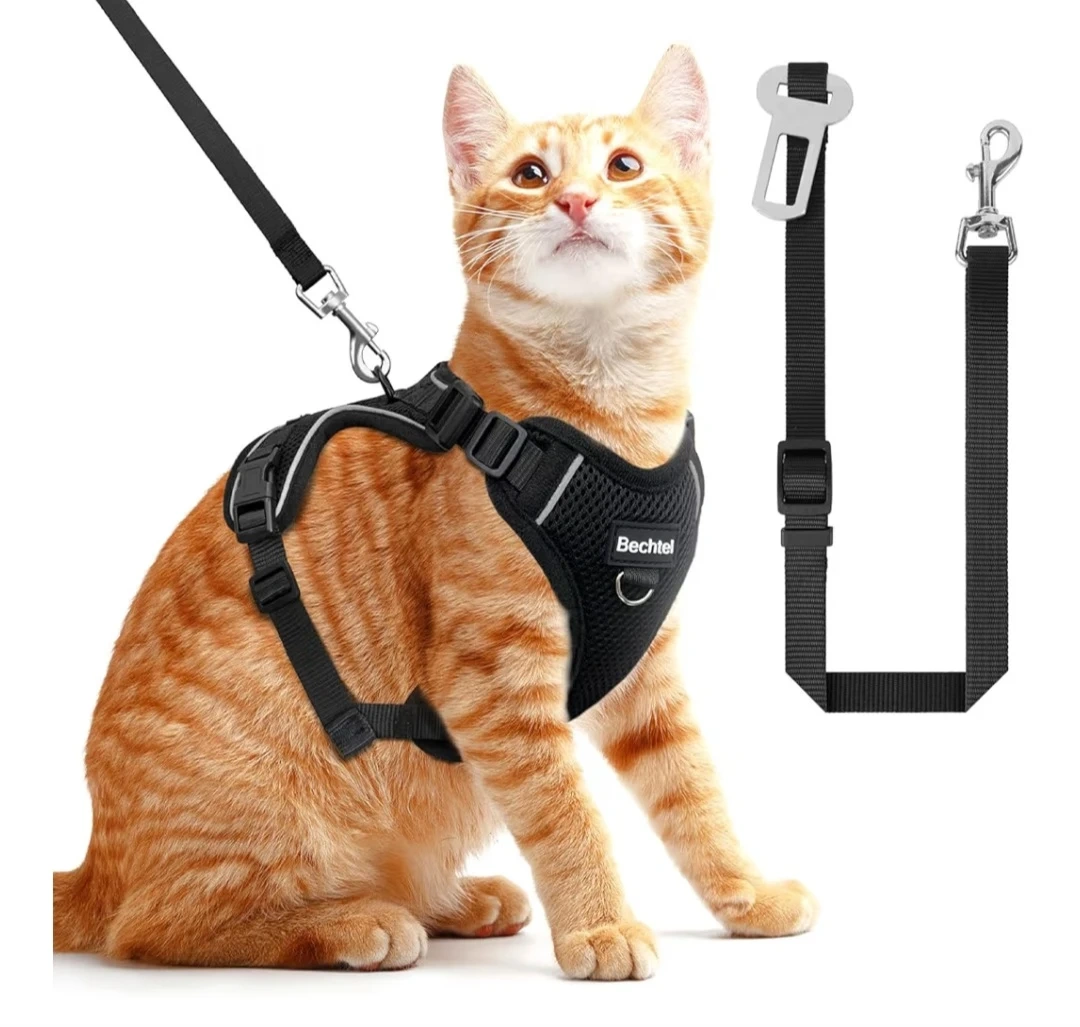 This Bechtel cat harness is perfect for walks and car rides! It's black and features:
