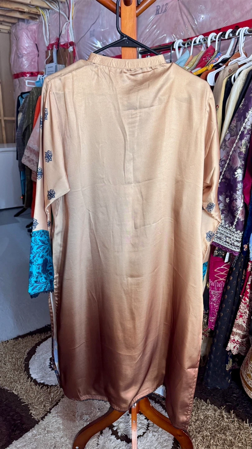 Selling a lovely ladies' salwar kameez suit in size L. The suit features a beautiful design with blue floral accents and a gradient effect on the fabric. It includes a top, pants, and a coordinating shawl. Perfect for a special occasion or everyday wear!