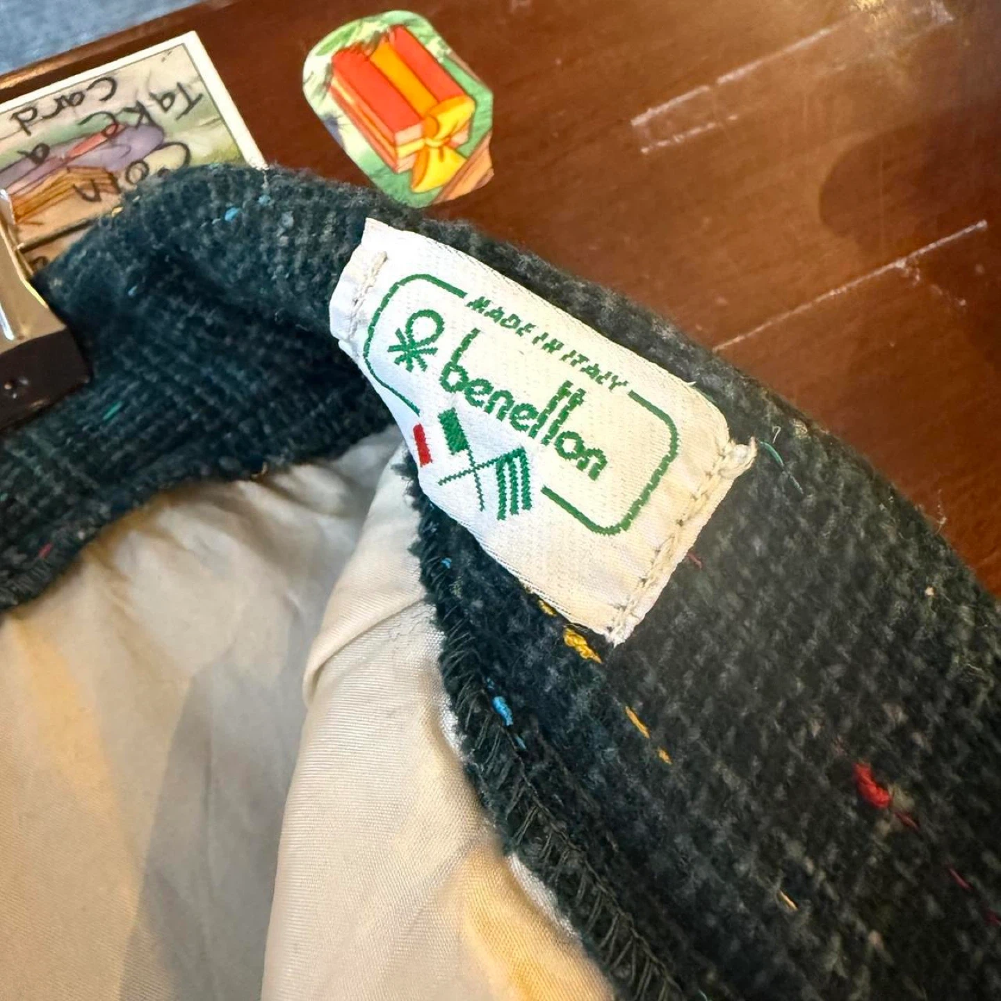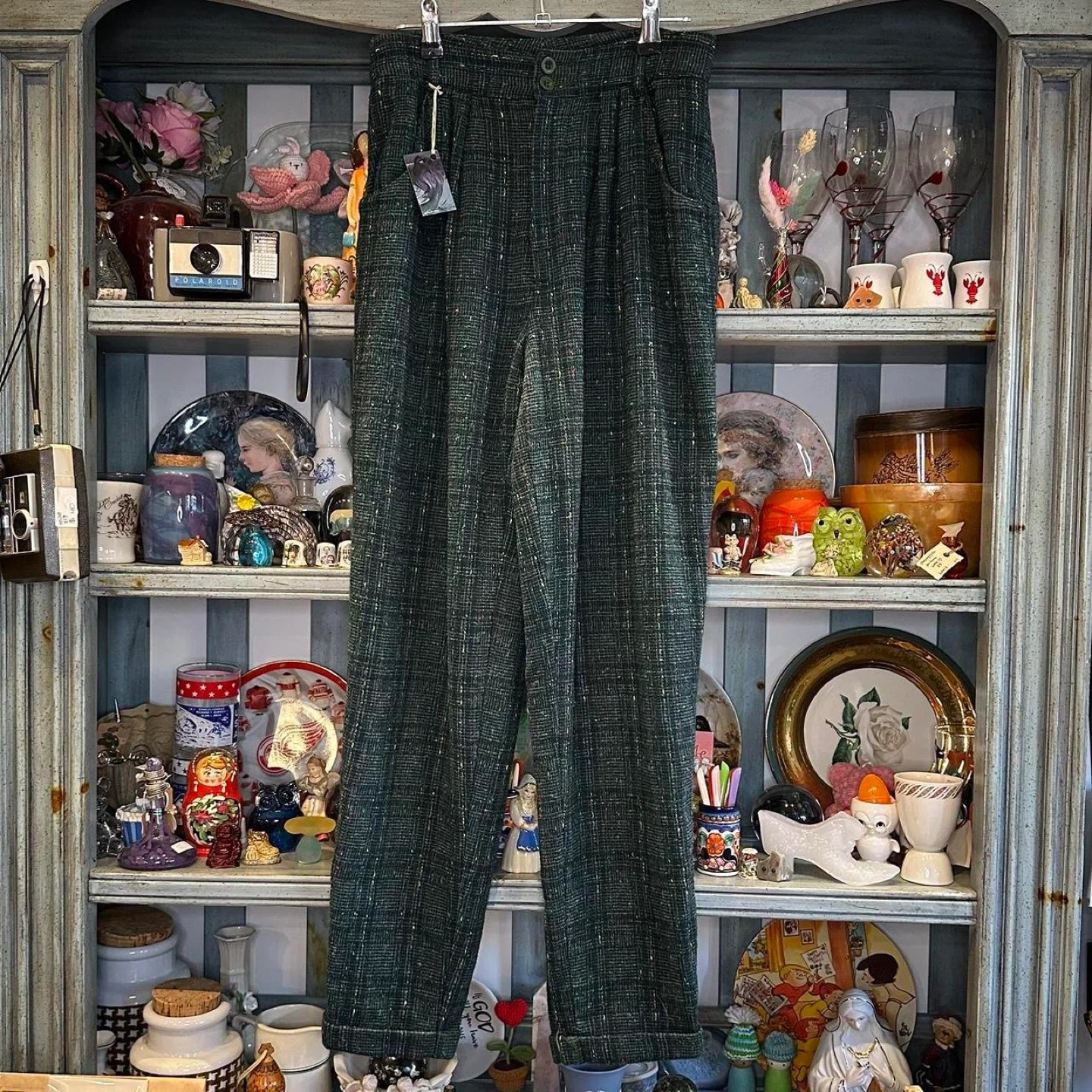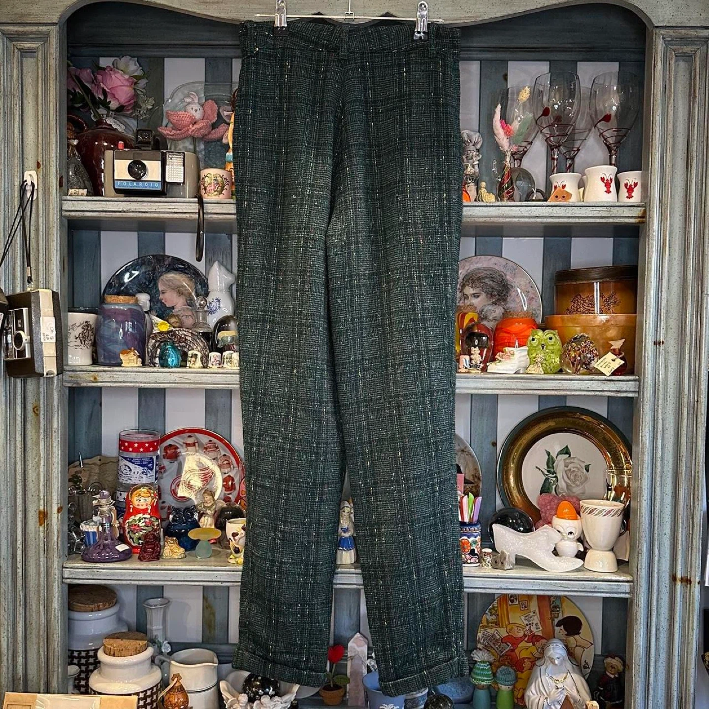 Green made in Italy high waisted tweed trousers with multicoloured speckles throughout.