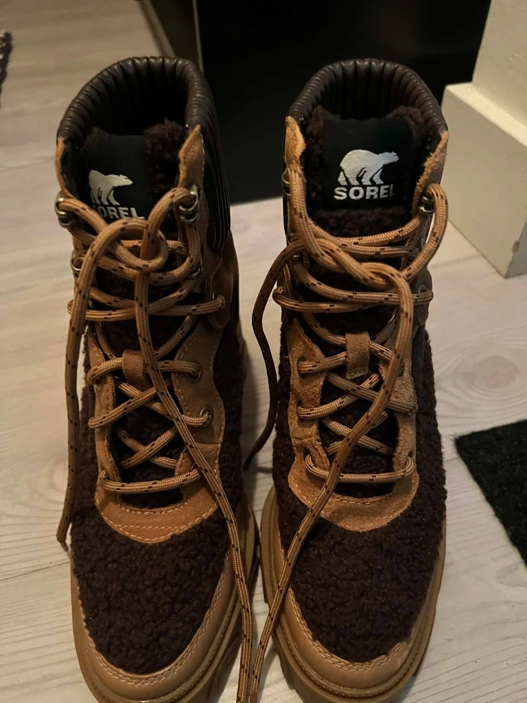 Selling a pair of women's Sorel boots in a lovely brown colour. The size is 7.5 US. They are in great condition and ready for a new home! Very beautiful perfect in winter brought it for over 200