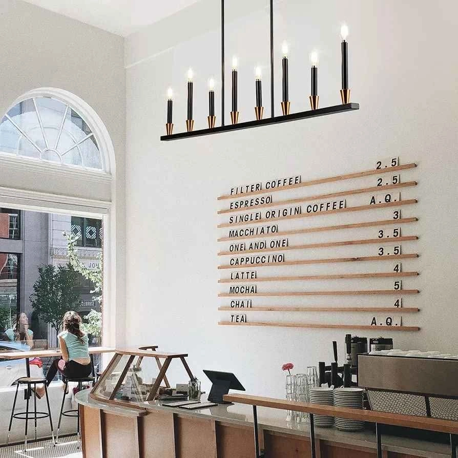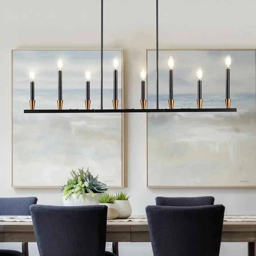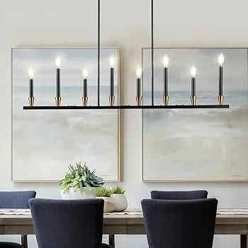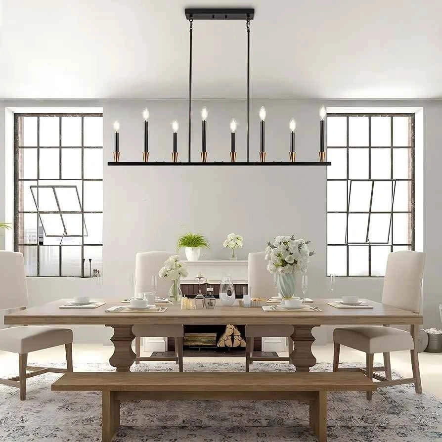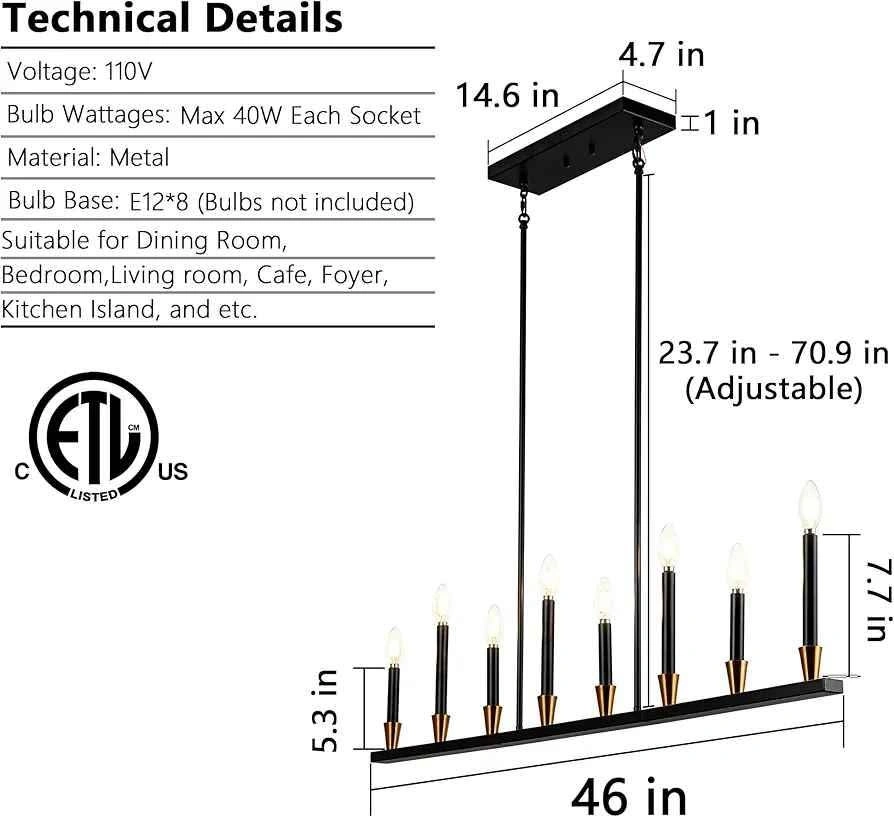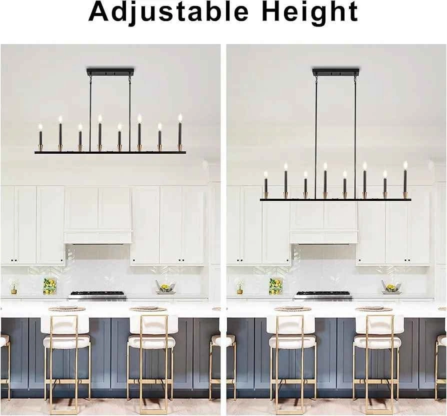 Black Linear Chandeliers for Dining Room, 46-Inch Modern Farmhouse Chandelier, Kitchen Island Light, 8-Light Metal Pendant Light Over Table, Adjustable Height, Black Dining Room Light Fixture