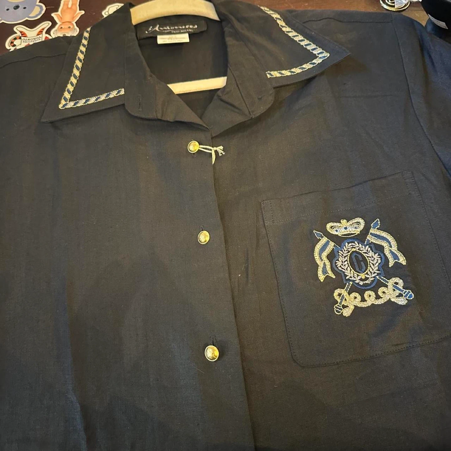 Buy & SellBlack Button-Down ShirtBlack Button-Down Shirt$28Black button down top with an embroidered crest and collar. (Measured laying flat) Length: 28.5” Waist: 21” Bust: 20.5” Arm length: 23”ConditionLike newSizeExtra LargeBrandAntonmeeesWHERE TO MEETStoreView MapSELLERverifiedTatyanaAnnex761 review0 chats·0 favorites·11 views