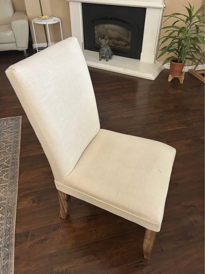 Buy & SellFabric and wood dinner chairsFabric and wood dinner chairs$804 dining chairs, fabric treated with stain repellent. 80 per chair/ 300 per 4.WHERE TO MEETCheck LocationView MapSELLERNuriaVanier N150 reviews0 chats·0 favorites·4 viewsSEND CHAT TO SELLERHi Nuria! I’m interested in your listing.Hi Nuria! I’m interested in your listing.Get the Karrot app to chatSign In to chat