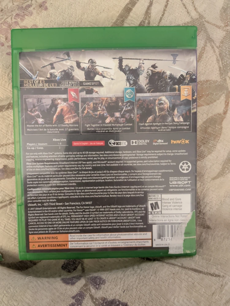 Selling the Xbox One game For Honor. It's in great condition and ready for a new player to enjoy! Requires internet to play.
