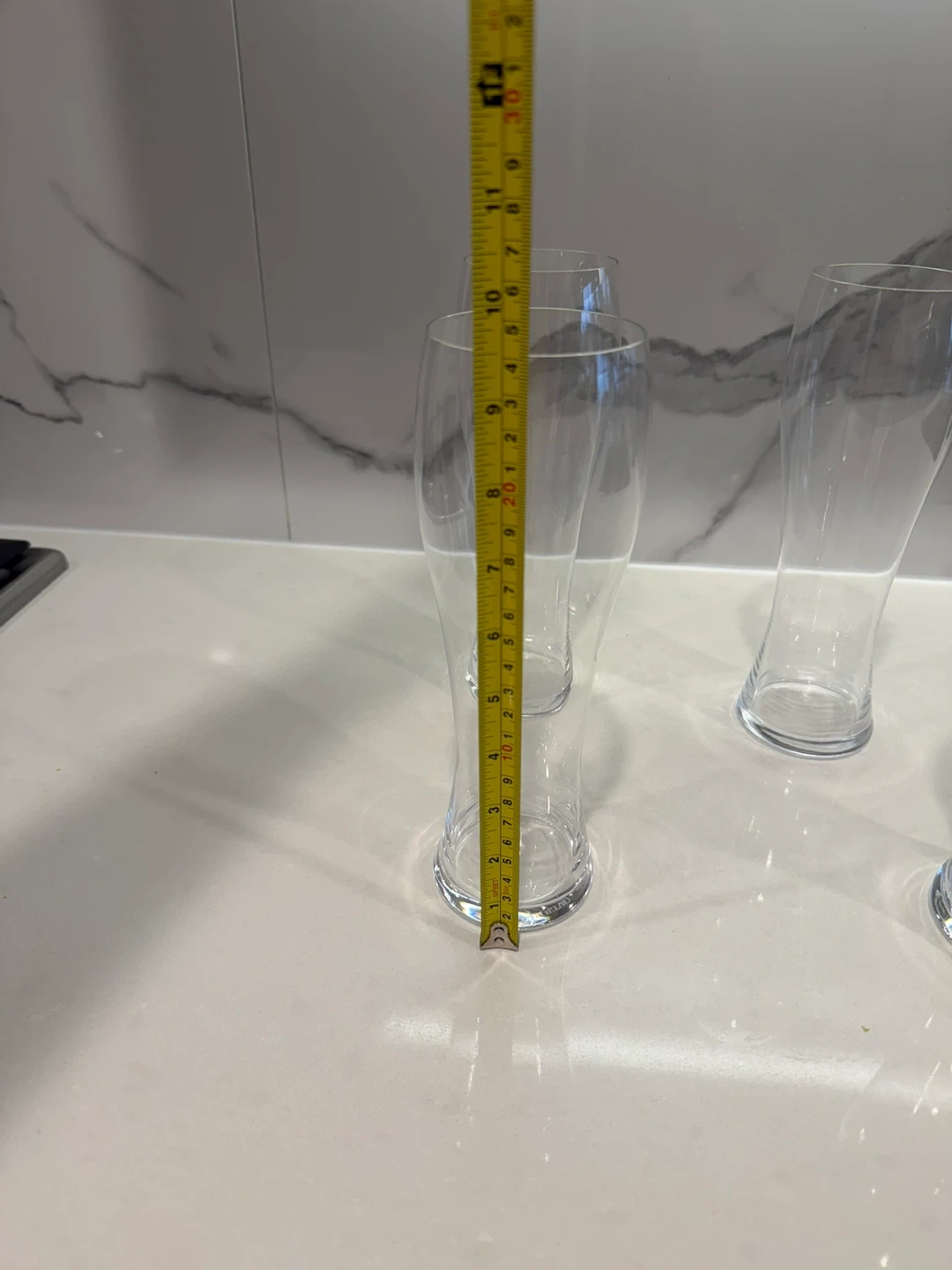 Selling a set of 4 beer glasses! They are in great condition and ready for your next get-together. Each glass is approximately 10 inches tall and has a diameter of about 3 inches at the top.