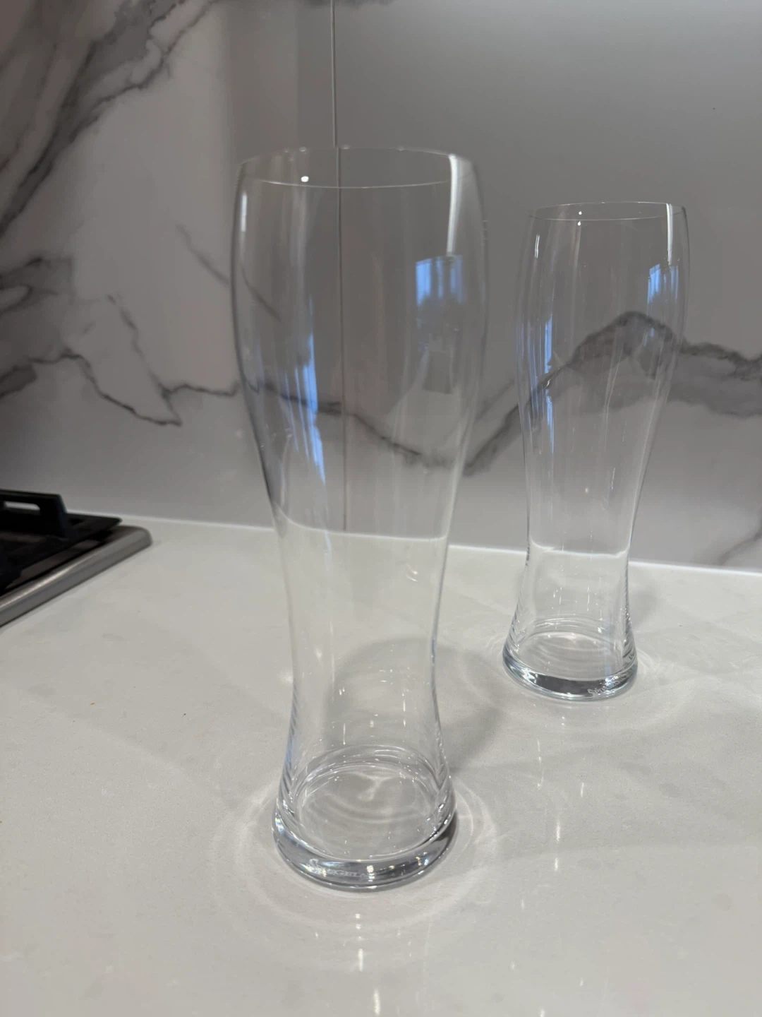 Selling a set of 4 beer glasses! They are in great condition and ready for your next get-together. Each glass is approximately 10 inches tall and has a diameter of about 3 inches at the top.